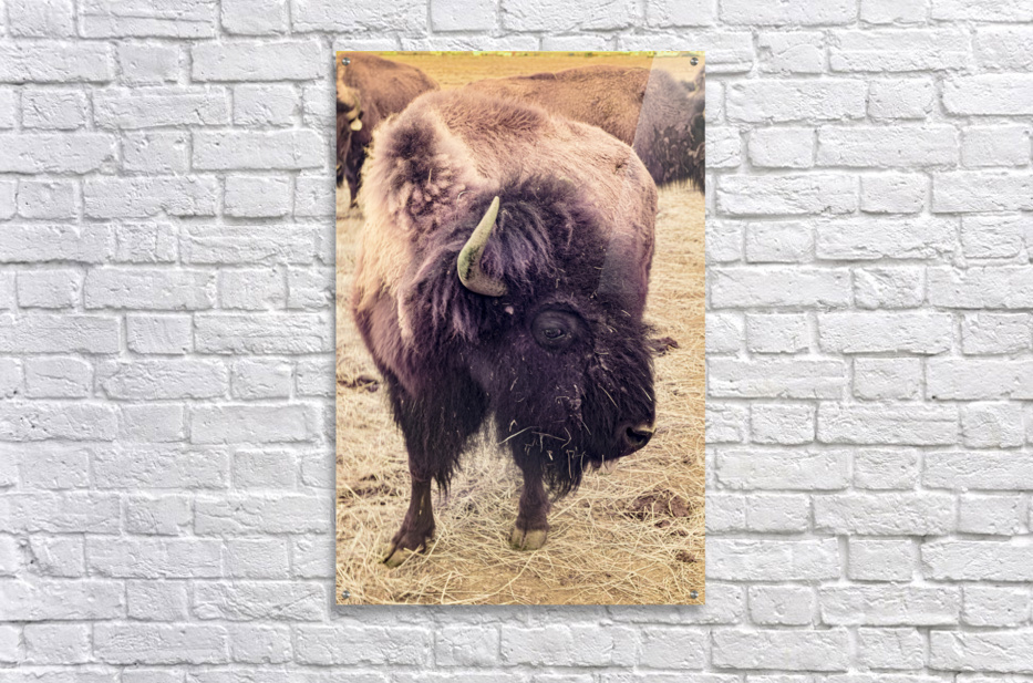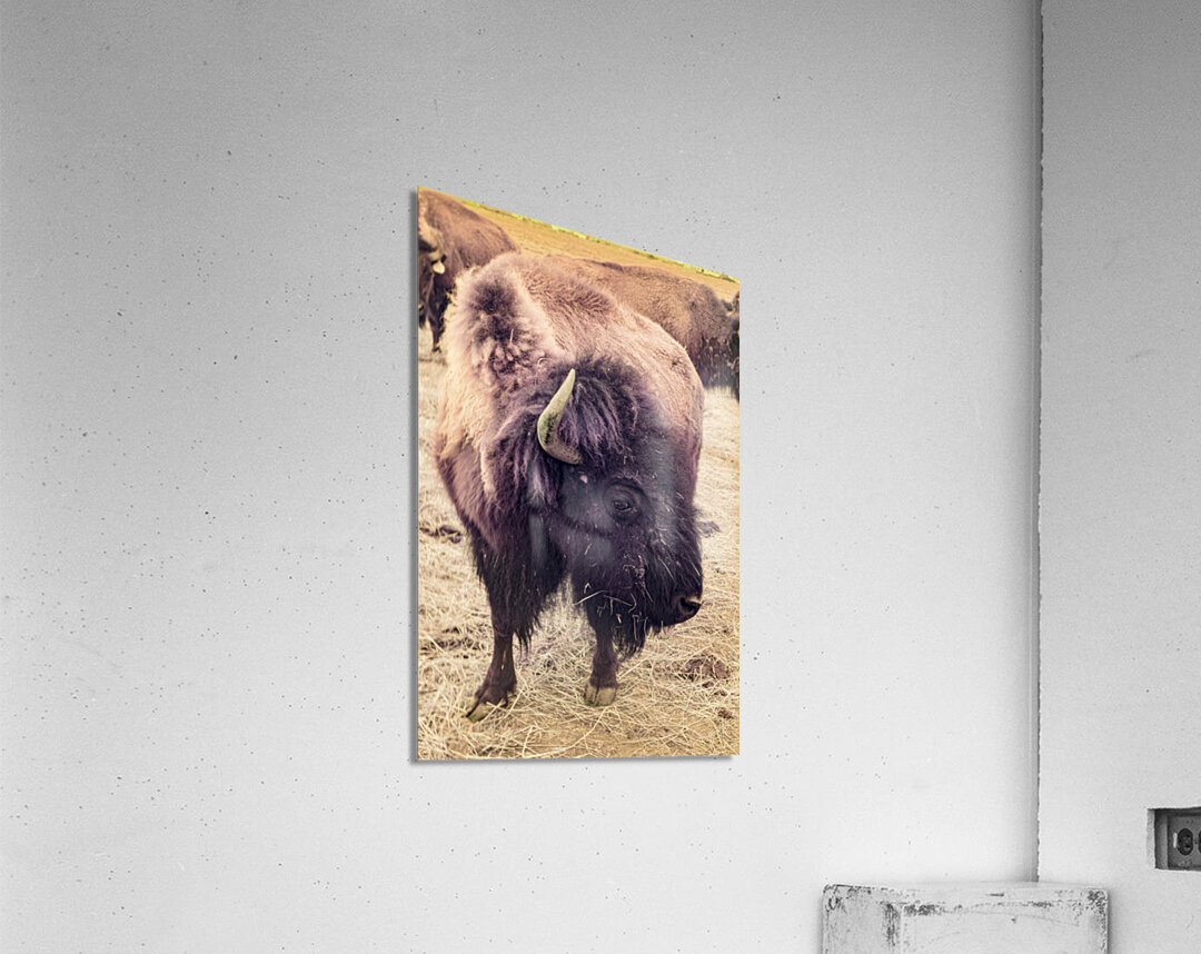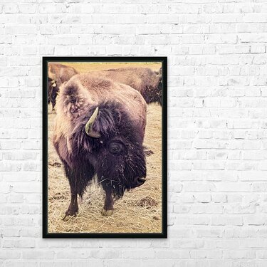 Step into the heart of the expansive plains of the American West with "Mane of the Plains," a captivating artwork that transports you to a world where bison roam freely. This stunning piece features a magnificent bison with a mane-like fur coat standing proudly amidst the grassy, straw-covered landscape. The warm sepia tones evoke a sense of nostalgia and rustic charm. At the same time, the other bison in the background suggest a close-knit herd. Immerse yourself in the wild beauty of the prairies and feel the calmness and strength exuded by the majestic leader of the herd. The detailed brushstrokes and textures bring the scene to life, making you feel like you are on the open plains. Whether you are a nature lover, wildlife enthusiast, or simply appreciate the beauty of the great outdoors, "Mane of the Plains" will capture your imagination and transport you to a world of natural wonder.