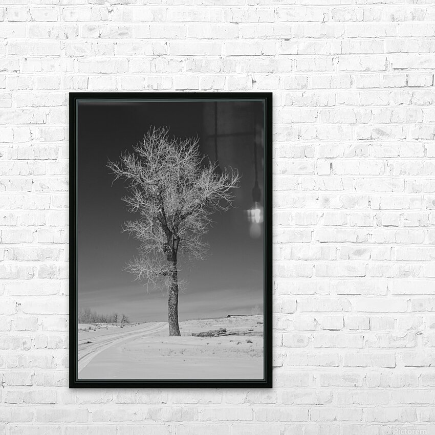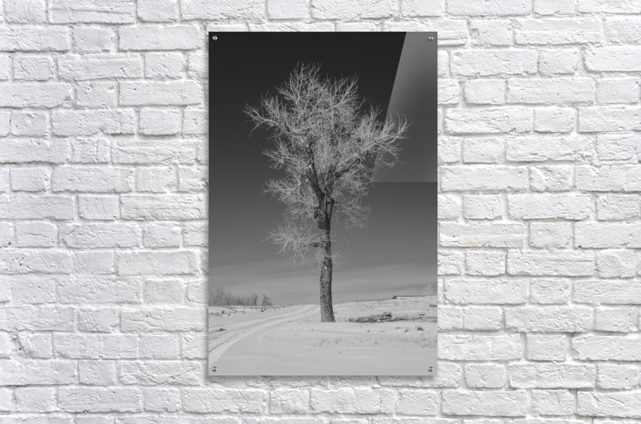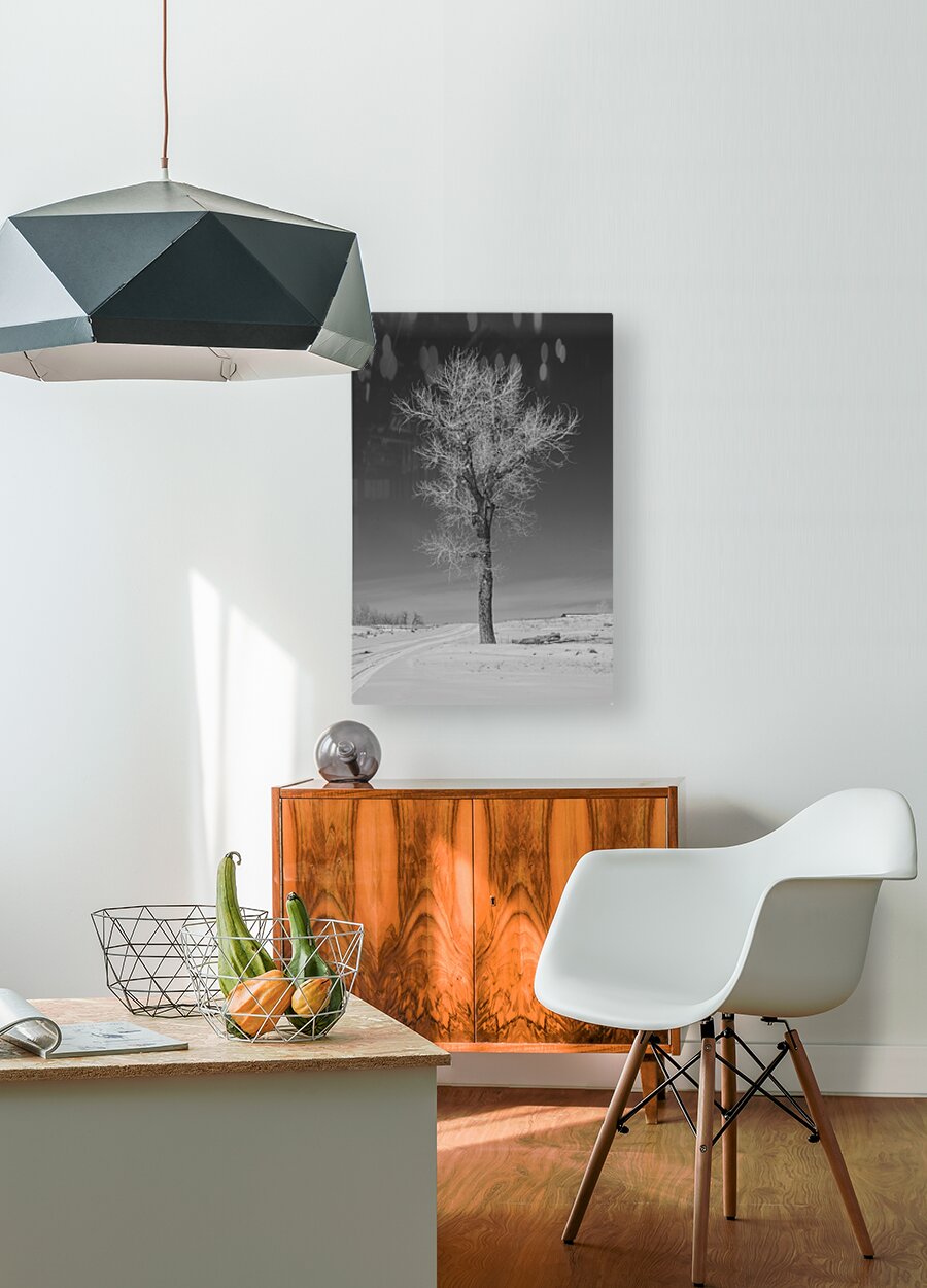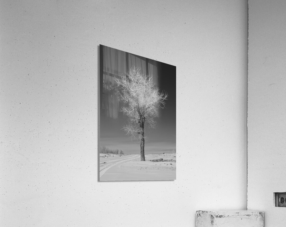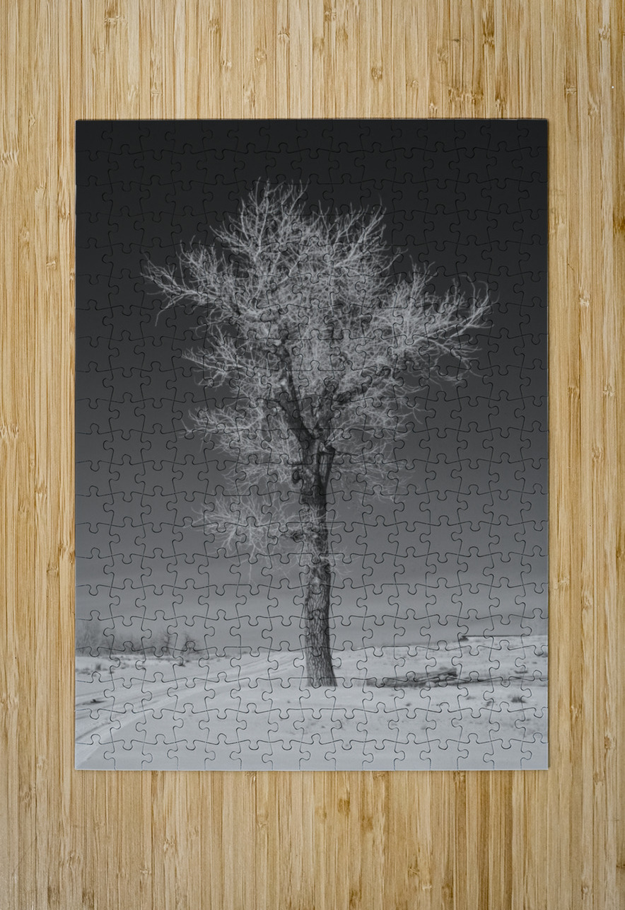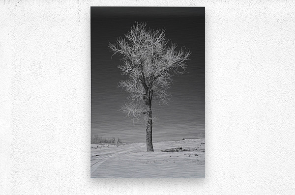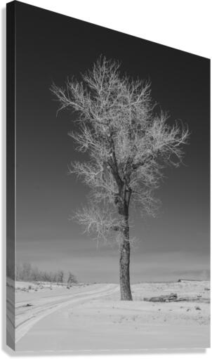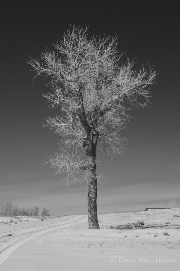 Lone tree standing tall next to a frozen road outside Denver Colorado