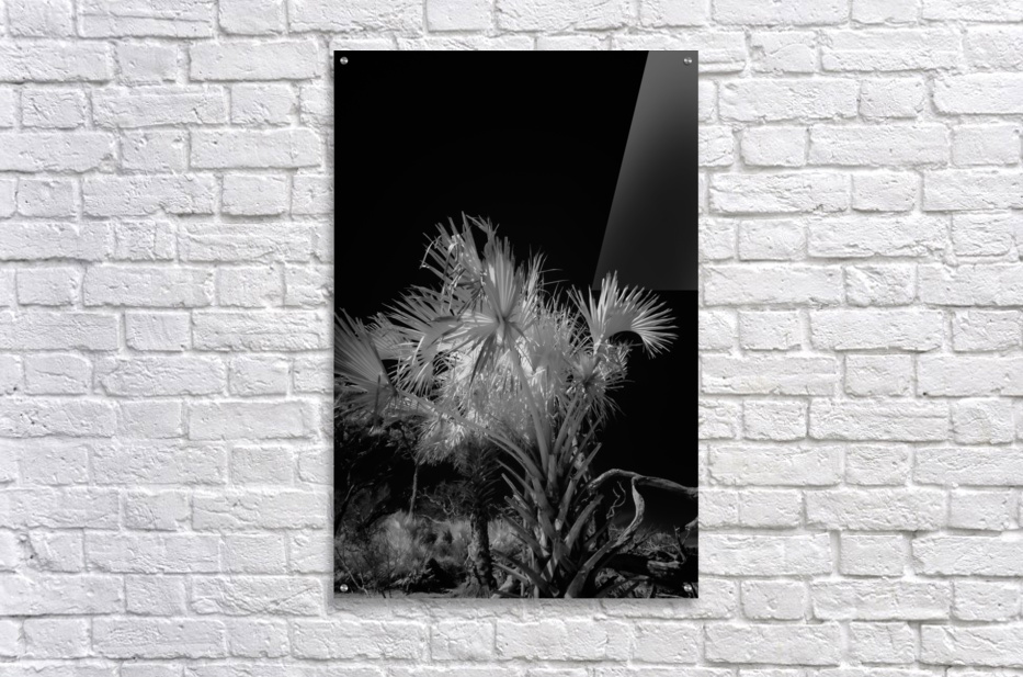 As I step into the realm of the extraordinary, I find myself captivated by the surreal beauty of Ethereal Foliage. This stunning infrared photograph transports me into a world where the ordinary transcends into the mysterious and ethereal. The scene unfolds before me, revealing a group of plants, their fronds extending outward like delicate fingers reaching toward the heavens. Bathed in an otherworldly luminescence, the foliage glows brightly against a backdrop of infinite darkness, casting a mesmerizing spell upon the viewer. The tonal range was captured in infrared, accentuating the bright white luminescence of the plants' leaves against the dark, seemingly empty background. This characteristic effect, typical of infrared light reflection, creates a surreal and enchanting atmosphere, deviating from the normal coloration associated with such vegetation. As I gaze upon this mesmerizing piece, the interplay of light and shadow transports me into a realm where reality and fantasy collide. Ethereal Foliage invites me to experience the magic of nature's beauty in all its mystical glory. Each delicate frond seems to whisper secrets of the unseen world, blurring the boundaries between what is seen and unseen. Through the lens of infrared photography, the familiar becomes extraordinary, and the wonders of nature are unveiled in a captivating display of enchantment. Step into this ethereal realm and behold the irresistible allure of nature's hidden mysteries.