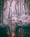 Embarking on a leisurely stroll through the enchanting landscapes of Abbots Mill in Delaware, I found myself immersed in a world of serene beauty and natural wonder. Little did I know that my journey would lead me to a captivating scene captured in a photograph of ethereal woodland splendor. The image unfolded before me like a dream—a monochromatic symphony of pink and mauve tones, casting a spell of tranquility over the forest. A serene body of water lay perfectly still, mirroring the towering trees and dense foliage surrounding it, creating a mesmerizing symmetrical composition. As I ventured deeper into the heart of the woods, I was greeted by the tall, majestic trees, their trunks rising skyward in silent reverence. The dense underbrush and foliage added texture and depth to the scene, weaving a tapestry of natural beauty that captivated the senses. Amidst the tranquility of the forest, my gaze was drawn to an overturned tree trunk partially submerged in the water—a poignant reminder of the passage of time and the eternal cycle of life and decay. Its presence added a focal point to the tableau, enhancing the sense of natural wonder that permeated the woods. Soft, diffused sunlight filtered through the canopy above, casting gentle shadows and highlighting the intricate details of the woodland landscape. The mirror-like reflection on the water's surface added to the dreamlike quality of the scene, enveloping me in a sense of serene solitude and enchantment. As I stood in awe of the whispering woods of Abbots Mill, I couldn't help but feel a profound connection to the natural world around me. In that fleeting moment, amidst the beauty of nature's embrace, I found solace and inspiration, a reminder of the timeless enchantment that awaits those who venture into the heart of the forest.