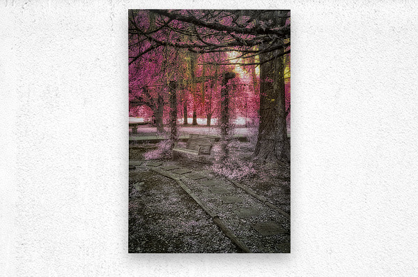 As we stayed in the quaint town of Holden, Louisiana, I stumbled upon a hidden gem nestled within the John Schneider Studio's property. This old garden swing held the echoes of time within its weathered frame. The image before me, captured in invisible light, revealed a scene of profound serenity and melancholy beauty. At the composition's heart stood an ancient wooden bench hanging by chains from the branches of a majestic tree, its weathered surface bearing the marks of countless seasons gone by. Partially surrounded by overgrown plants and unruly foliage, the swing exuded an aura of abandonment, as if nature had reclaimed it as her own. Stepping stones, worn and buried beneath layers of earth, led the way to this forgotten sanctuary, guiding me through the wilderness toward the solitary swing. Towering trees framed the scene, their thick trunks and textured bark bearing witness to the passage of time. In the distance, a hint of a clearing or meadow bathed in soft, ethereal light offered a glimpse of the world beyond—where time seemed to stand still and nature reigned supreme. The monochrome photograph's absence of color only enhanced the melancholic and serene atmosphere, inviting me to reflect on the ephemeral nature of existence and the timeless dance of decay and renewal. As I entered this enigmatic realm, I couldn't help but lose myself in the echoes of a bygone era, where the echoes of time whispered through the rustling leaves and the gentle sway of the garden swing. It was a profound connection with nature and a reminder of the beauty in the cycle of life and decay.