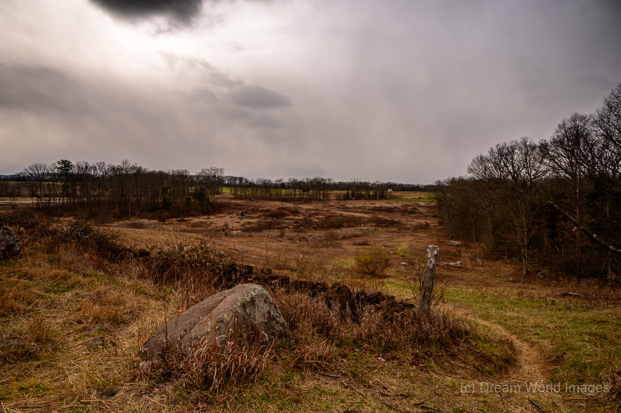 Where history echoes across time, Gettysburg's legendary Triangular Field stretches beneath brooding skies. This contemplative capture reveals the...[+]
