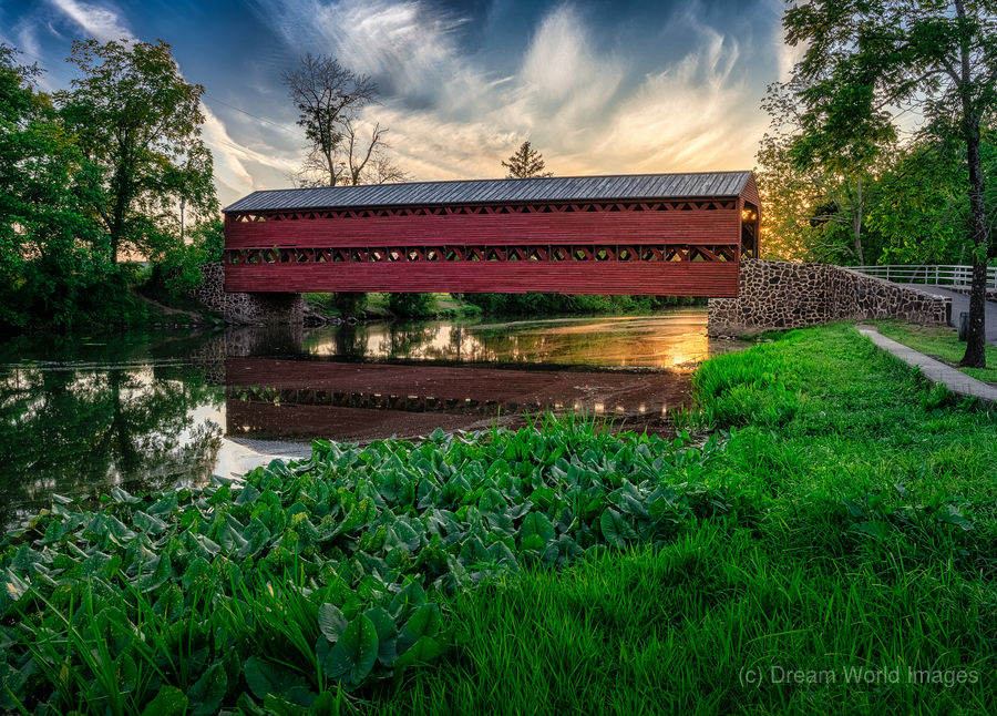 SERENE SUNSET BEHIND SACHS COVERED BRIDGE