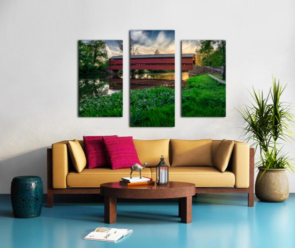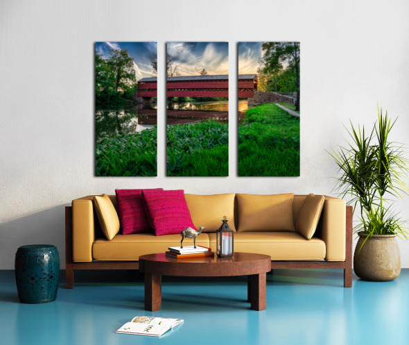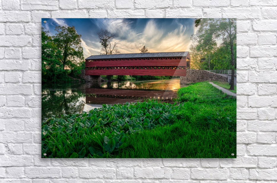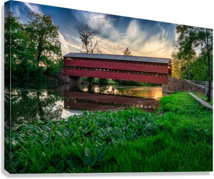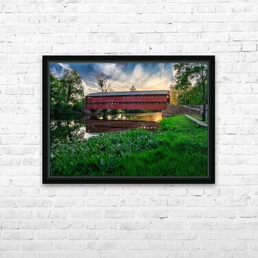 Get this artwork "Serene Sunset Behind Sachs Covered Bridge" in a framed print.