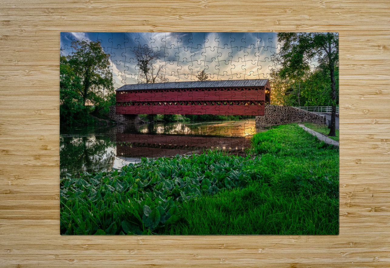 Serene Sunset Behind Sachs Covered Bridge Dream World Images Puzzle printing
