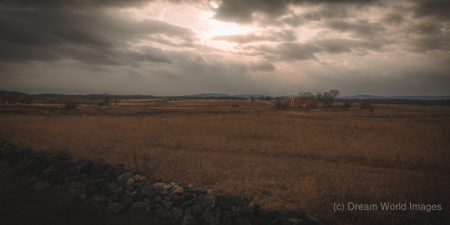 Sun peaking thru onto the Codori Barn in Gettysburg
