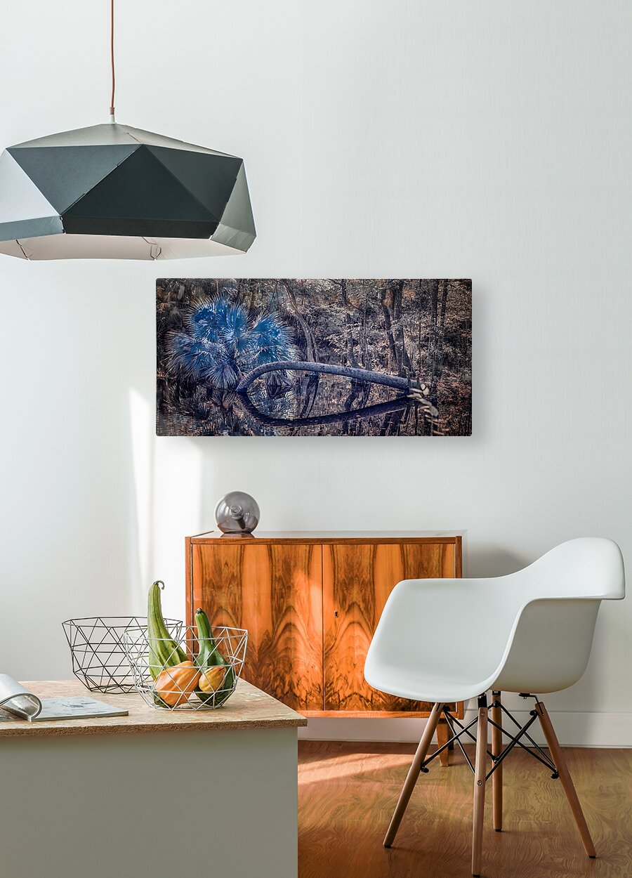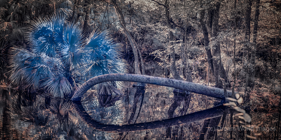 Where palm meets sky, infrared vision reveals nature's own abstract art. Through this otherworldly lens, a fallen palm creates a perfect circle against metallic foliage, reminding us that even in decay, nature crafts perfect geometry. Part of the "Realm of Dreams" collection, this image celebrates the hidden patterns in everyday scenes.