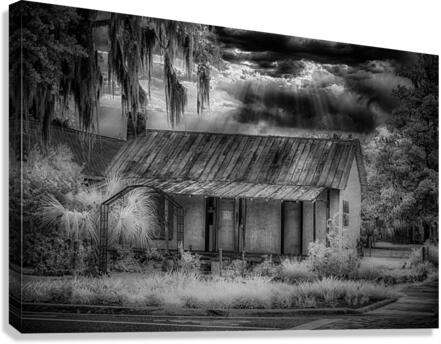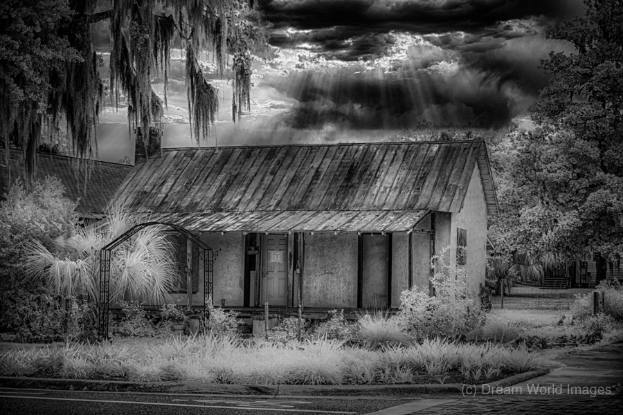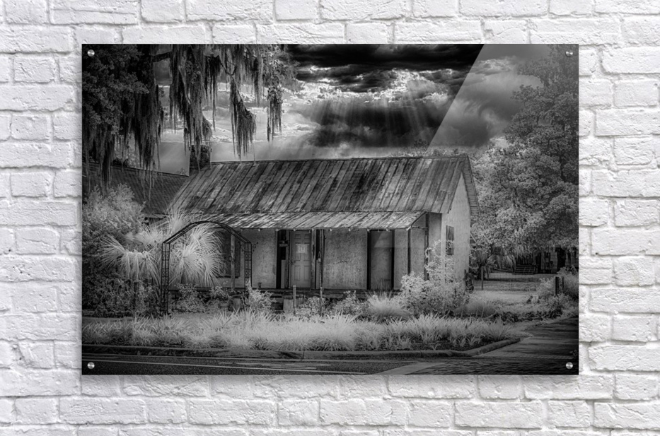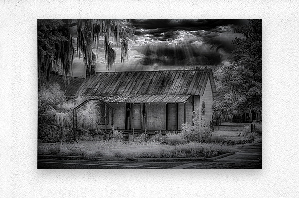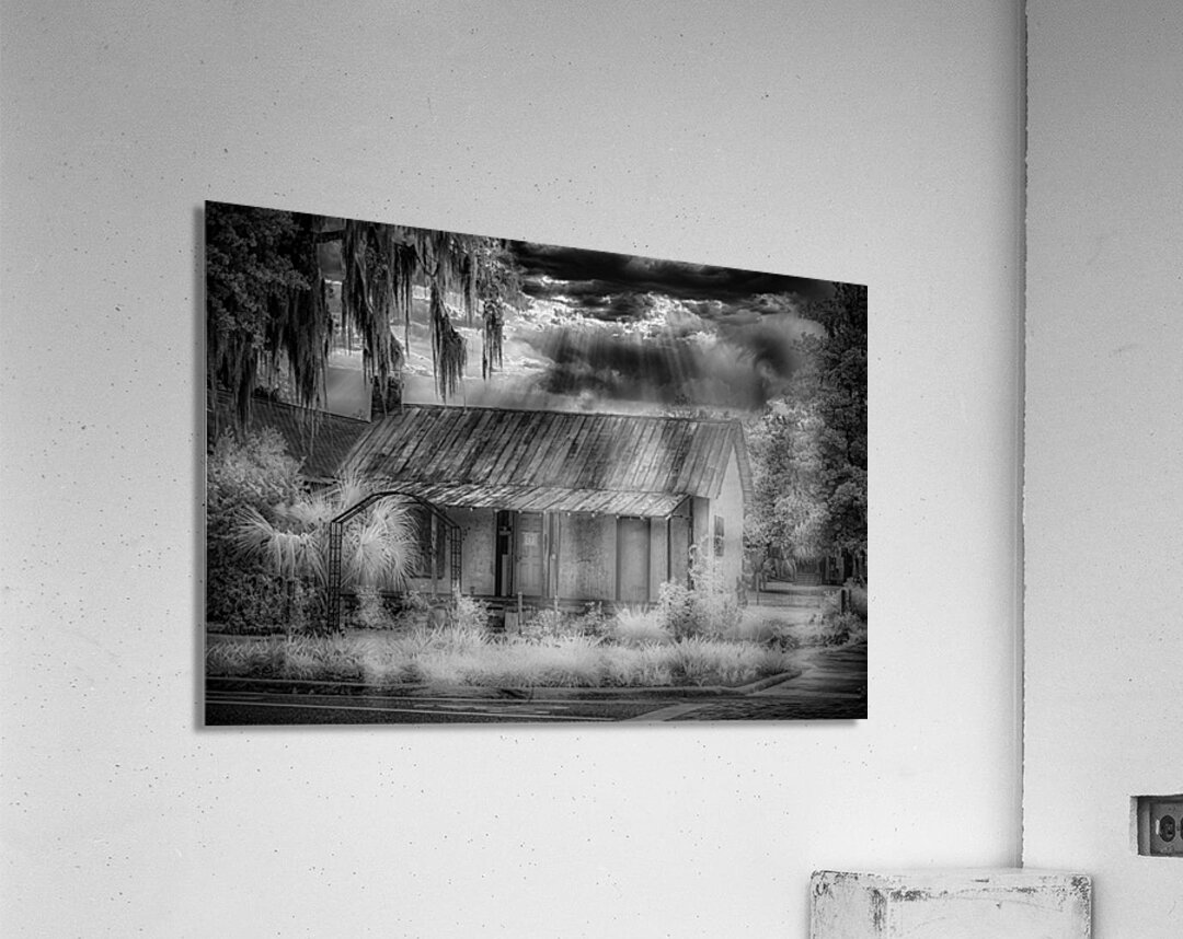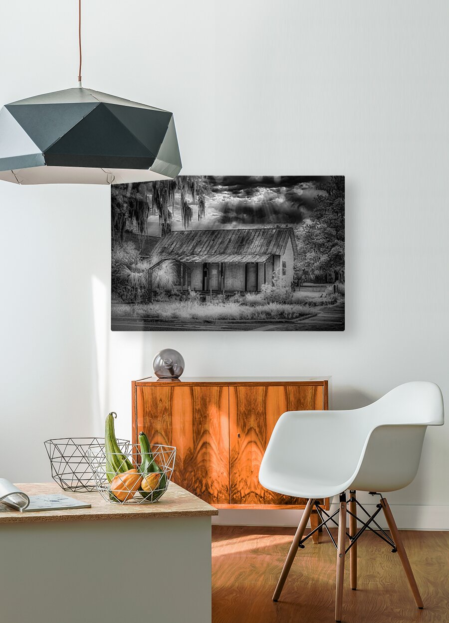In the quiet town of Inverness, Florida, a poignant moment unveils itself through the lens of a black and white infrared image—a small home, adorned with a condemned sign, stands as a silent testament to dreams that once echoed within its walls. This poignant scene materialized during a casual walk with a friend, a sudden turn revealing the stark reality of a dwelling that had once been someone's beacon of hope for a better future. The black and white infrared treatment adds a haunting elegance to the scene, emphasizing the textures of the weathered home and the surrounding foliage. The condemned sign, like a heavy punctuation mark, hangs as a melancholic reminder of dreams extinguished and promises unfulfilled. As the shutter clicked, capturing this image now known as "Lost Hope," the infrared spectrum unveiled a sky that defied the somber narrative below. The heavens, transformed into a dramatic interplay of light and shadow, provided an unexpected contrast to the desolation of the scene. Amidst this poignant tableau, my friend questioned the choice to capture such a seemingly bleak moment. Yet, in the artistic lens of infrared, the starkness tells a deeper story—one of resilience, the passage of time, and the emotional weight carried by abandoned dreams. "Lost Hope" becomes more than just an image; it evolves into a visual elegy, inviting contemplation and reflection on the narratives embedded in the quiet corners of Inverness, where hope once flourished and where, through the lens of memory, its echoes endure.