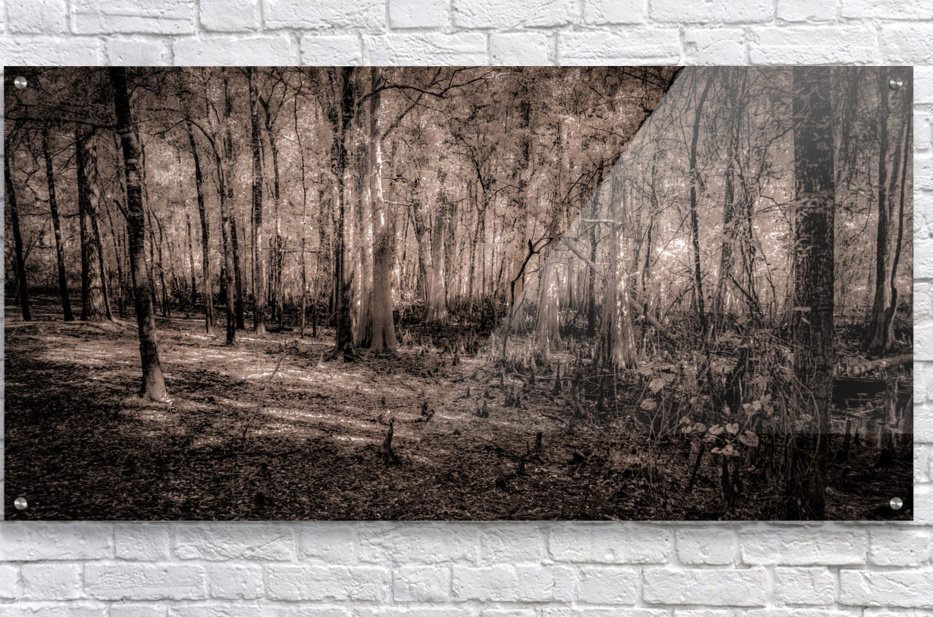 In the misty morning light, cypress knees rise like silent sentinels from the forest floor. The sepia tones and ethereal atmosphere transform this swampland scene into a dreamlike realm where every tree tells a story of time's patient work. Part of the "Shades of Light & Shadow" collection, this image captures the mysterious beauty of wetland forests, where shadows and light dance through ancient guardians in an eternal performance of nature's artistry.