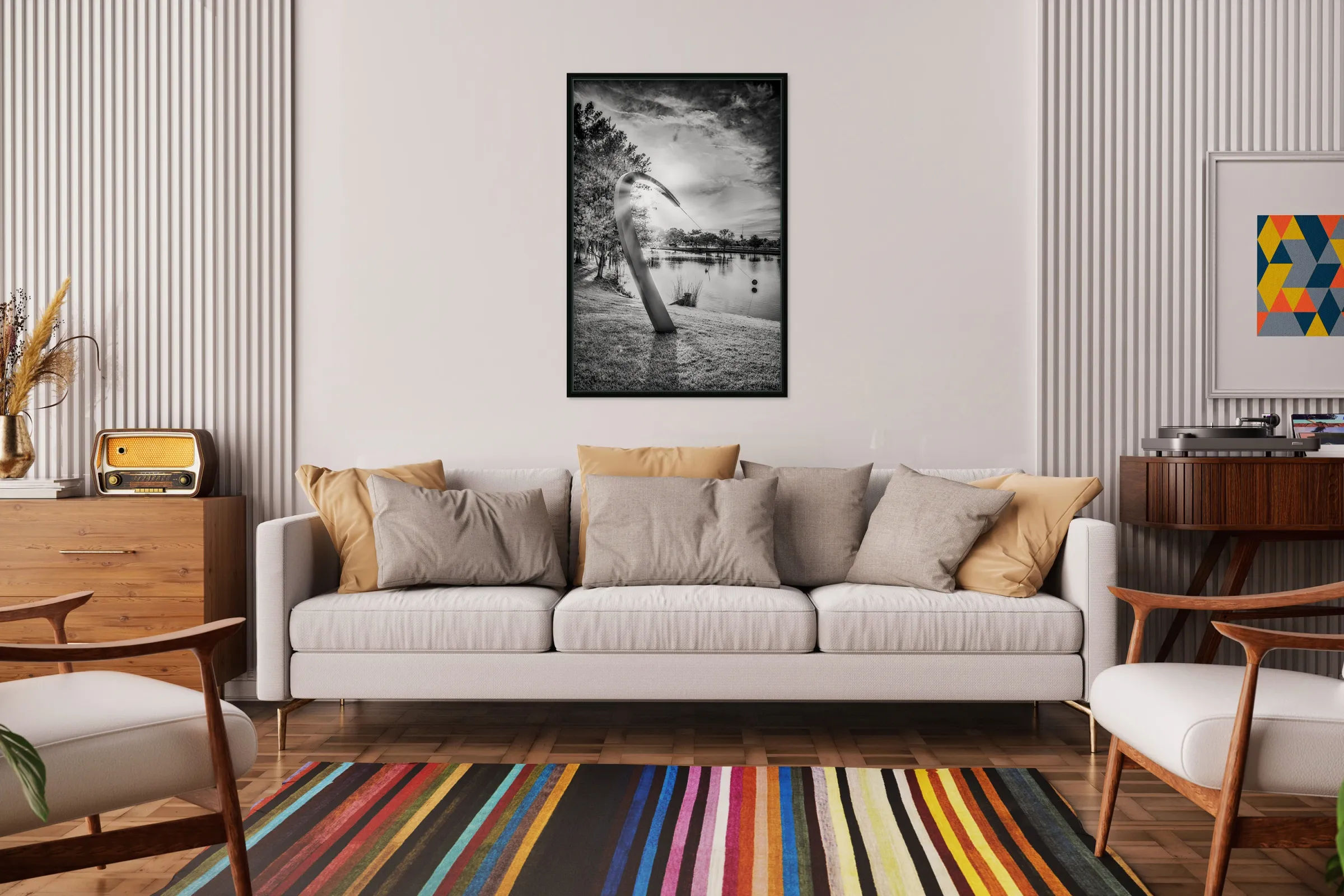 Transport yourself to a realm where art and nature intertwine in a captivating dance at Ocala's small-town lake. At the heart of this visual narrative stands the fishing rod sculpture, not merely an artistic element but a transformative conduit. It serves as a bridge connecting the observer to the profound tranquility that defines the essence of this lakeside haven. The meticulous black and white infrared treatment of the image elevates it beyond the ordinary, inviting contemplation and sparking a moment frozen in time. As you gaze upon the scene, the marriage of sculpture and serenity unfolds seamlessly, creating a poetic whole that transcends the boundaries of the visual realm. The fishing rod sculpture, with its graceful lines and artistic contours, becomes more than a mere structure—it becomes a vessel carrying the spirit of the lake's inherent calm. The interplay of light and shadows, accentuated by the monochromatic treatment, adds layers of depth to the composition, allowing each viewer to immerse themselves in the timeless beauty captured within the frame. This image is not just a photograph; it's an invitation to pause, reflect, and connect with the harmonious coexistence of art and nature. It encapsulates a moment where the sculptural grace and the tranquil lakeside setting unite to create an enchanting narrative, inviting all who behold it to experience the serene poetry that unfolds at the intersection of man-made beauty and the natural world.
