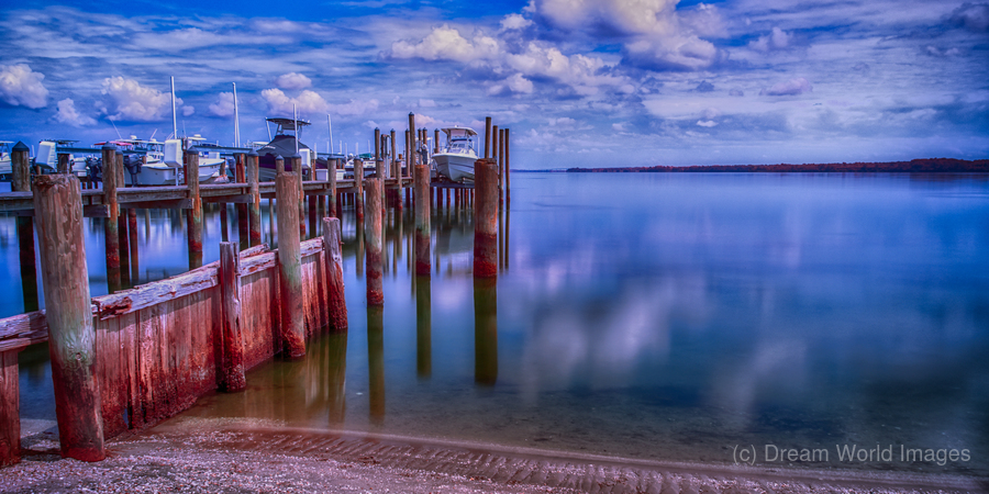 Colorful long exposure capture of a dock and ramp in Maryland.