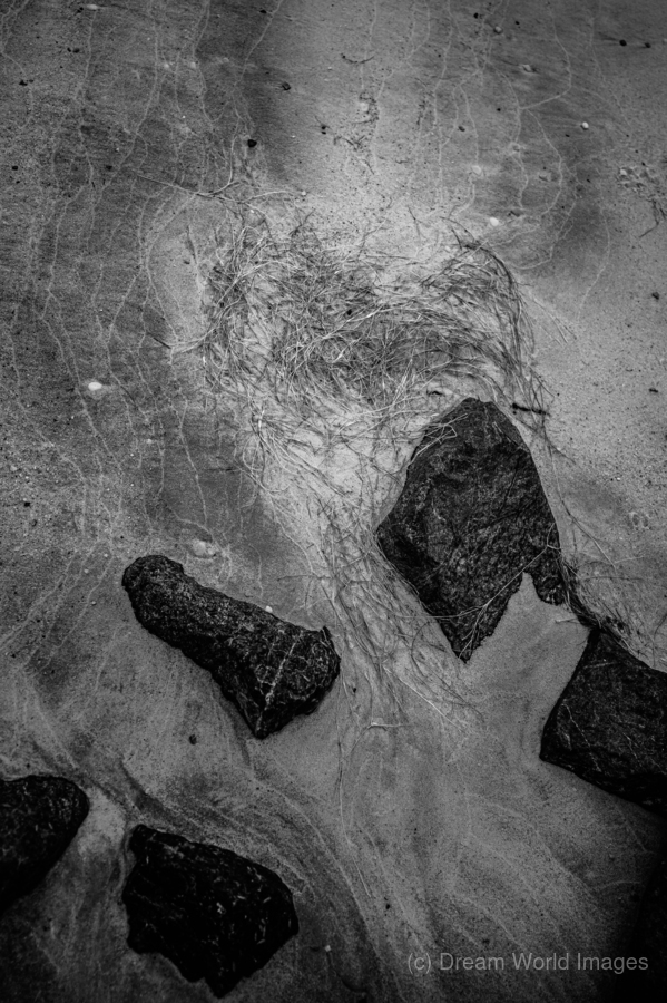 Step into a world where the boundaries between earth and sea blur, rocks dance amongst ethereal grass strands, and light and shadow play a mesmerizing