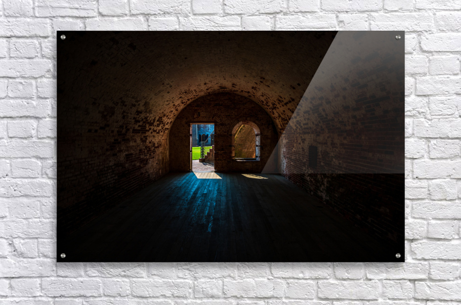 Step into a realm where time stands still, where ancient walls whisper secrets of days long past at Fort Macon, North Carolina. Between Worlds beckons you to wander through a dimly lit corridor within the historic fort, the play of light and shadow revealing the rich texture of weathered bricks that have withstood the test of time. As you pass through the passage, a bright light at the end draws you towards a tantalizing glimpse of the outside world beyond the fort's walls. Traverse this enigmatic space and feel the weight of history pressing down on you, urging you to contemplate the mysteries concealed within these old walls of Fort Macon. The archways, the wooden floor, and the interplay of darkness and light - all beckon you to embark on a journey of discovery within this historic site. The echoes of soldiers long gone seem to linger in the air as you immerse yourself in the stories of the past that are intricately woven into the very fabric of Fort Macon. Embark on this journey Between Worlds at Fort Macon, where the intertwining of the past and present creates a captivating atmosphere that invites you to explore and ponder the significance of history in shaping our world today.
