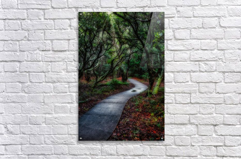 Embark on a magical journey through Jockey's Ridge State Park on the Outer Banks of North Carolina, where nature weaves a spellbinding tale. After a summer rain, a path winds through a mesmerizing twist of oak tree branches, creating a captivating walkway that beckons exploration. The canopy of oak branches forms a natural labyrinth, where sunlight filters through the leaves, casting a play of enchanting light and shadows on the forest floor. Each step becomes a dance with nature, as the rain-kissed leaves shimmer in the dappled sunlight, creating an ethereal atmosphere. As you traverse the winding path, the fragrance of damp earth and the vibrant hues of greenery transport you to a world of wonder. The twists and turns of the oak branches create a canopy that feels like a secret passage to a hidden realm, where magic lingers in the air. This photograph is not just a snapshot; it's a visual portal to the enchantment of Jockey's Ridge State Park. The post-rain ambiance adds a refreshing touch to the scenery, making the walkway an invitation to connect with the natural beauty that surrounds you.