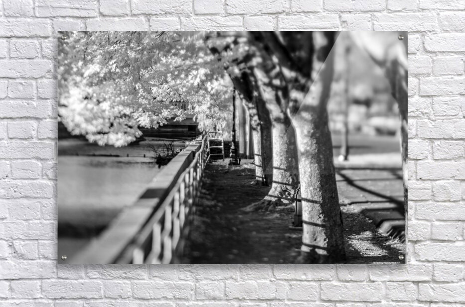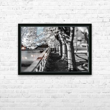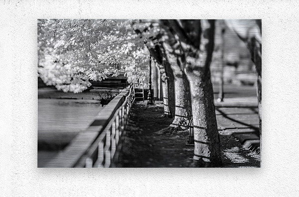 On a captivating photowalk along the Susquehanna River in York, Pennsylvania, I embarked on a visual journey that transcended the ordinary. Armed only with my original infrared-converted camera, the scenes unfolded in a breathtaking monochrome, revealing a world of hidden details and ethereal beauty. The image, far surpassing the mundane title "Along the River," captures a moment of tranquility along the riverbank. The black and white infrared tones add a layer of mystery and depth to the scene, turning a simple railing into a work of art. This captivating view gazes along the river, the railing serving as a guide, leading the eye toward a row of majestic oak trees standing proudly along the river's edge. The shallow depth of field accentuates the grandeur of the oak trees, rendering them in a dreamlike state against the serene backdrop of the Susquehanna River. The crispness of the railing in the foreground contrasts with the soft, subtle details of the distant trees, creating a harmonious blend of textures. What makes this photowalk truly special is the presence of my daughter, who joined me on this exploration. Together, we delved into the riverside beauty of York, creating cherished memories amidst the stark contrasts and intricate details captured by the infrared lens. Join me on this visual odyssey, where "Monochrome Serenity" invites you to experience the magic of York's riverside through the lens of infrared photography. Explore the unique perspectives, unearth hidden details, and relish in the beauty of nature's simplicity, all while sharing the joy of discovery with a loved one.
