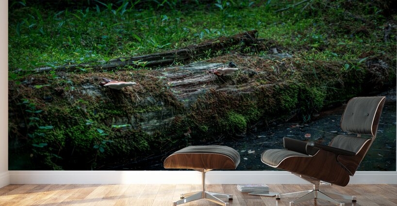 A fallen tree creating a damn on the Conococheague Creek with two fungi growing on it.