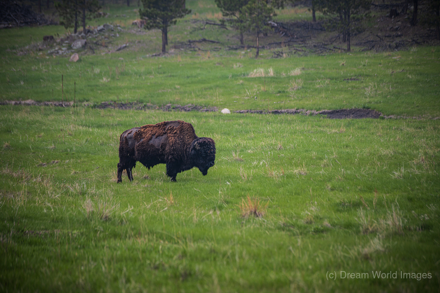 As my wife and I embarked on a scenic drive through the captivating landscapes of Custer, South Dakota, we were filled with anticipation at the possibility of encountering the iconic bison that roam these lands. Little did we know that our journey would lead us to an awe-inspiring spectacle of nature's grandeur. As we traversed the winding roads of the wildlife loop, our eyes were met with a breathtaking sight—a herd of bison, majestic and proud, grazing peacefully in their natural habitat. Among them stood a magnificent bull, its thick, shaggy mane and imposing horns a testament to its strength and resilience. With a calm expression in its eyes, it turned toward our camera as if welcoming us to its domain. Beside the bull, a couple of young calves frolicked in the grass, their reddish-brown fur gleaming in the sunlight. It was a heartwarming sight, reminding us of the generational aspect of the herd and the importance of family bonds in the wild. As we observed the bison in their natural habitat, we couldn't help but feel a sense of reverence for these magnificent creatures. They stood in a line, receding into the background, their presence evoking a sense of community and harmony within the grassy plains. Capturing the moment with our cameras, we marveled at the lush greenery surrounding the bison, indicative of the rich and fertile lands they call home. The selective focus accentuated the main bison in the foreground while softly blurring the others in the background, adding depth and dimension to the composition. In that fleeting moment, amidst the tranquility of Custer's wildlife loop, we were reminded of the timeless beauty and majesty of the natural world. And as we continued our journey, the memory of the bison grazing peacefully in their prairie paradise stayed with us, a testament to the enduring allure of the American West.