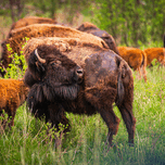 As my wife and I embarked on a scenic drive through the captivating landscapes of Custer, South Dakota, we were filled with anticipation at the possibility of encountering the iconic bison that roam these lands. Little did we know that our journey would lead us to an awe-inspiring spectacle of nature's grandeur. As we traversed the winding roads of the wildlife loop, our eyes were met with a breathtaking sight—a herd of bison, majestic and proud, grazing peacefully in their natural habitat. Among them stood a magnificent bull, its thick, shaggy mane and imposing horns a testament to its strength and resilience. With a calm expression in its eyes, it turned toward our camera as if welcoming us to its domain. Beside the bull, a couple of young calves frolicked in the grass, their reddish-brown fur gleaming in the sunlight. It was a heartwarming sight, reminding us of the generational aspect of the herd and the importance of family bonds in the wild. As we observed the bison in their natural habitat, we couldn't help but feel a sense of reverence for these magnificent creatures. They stood in a line, receding into the background, their presence evoking a sense of community and harmony within the grassy plains. Capturing the moment with our cameras, we marveled at the lush greenery surrounding the bison, indicative of the rich and fertile lands they call home. The selective focus accentuated the main bison in the foreground while softly blurring the others in the background, adding depth and dimension to the composition. In that fleeting moment, amidst the tranquility of Custer's wildlife loop, we were reminded of the timeless beauty and majesty of the natural world. And as we continued our journey, the memory of the bison grazing peacefully in their prairie paradise stayed with us, a testament to the enduring allure of the American West.