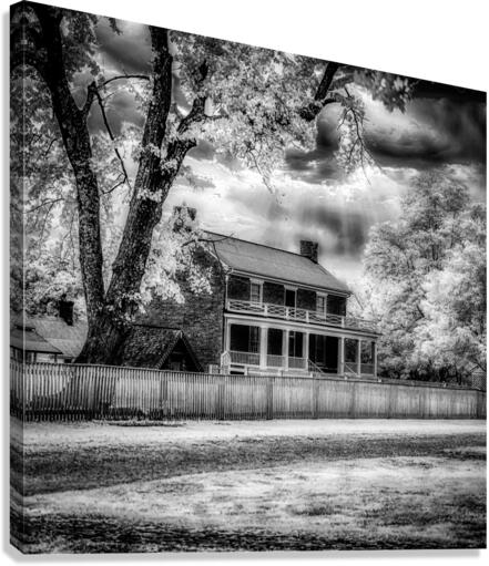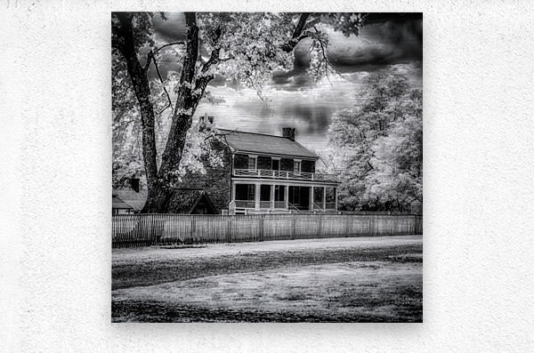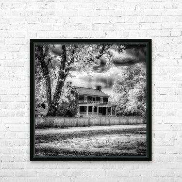 Embarking on a historical odyssey through Appomattox Courthouse Town, my lens revealed a poignant scene along a winding, weathered gravel road. This time, the path gracefully led to the McLean House. On this hallowed site, General Lee surrendered, partially obscured in the distance and rendered in striking monochrome infrared. The winding gravel road, framed by the solemn whispers of history, invited contemplation on the profound moment that unfolded at the McLean House. In the monochrome infrared landscape, the grayscale tones unveiled the nuanced textures of the road and the historic house, creating a somber tableau that resonated with the echoes of surrender. Each curve of this historical route seemed to echo the resilience and profound decisions made. As the road meandered towards the distant McLean House, the monochrome infrared lens heightened the contrasts and textures, casting an ethereal and timeless aura upon the scene. The house, where history pivoted, stood in solemn silhouette against the backdrop of the infrared landscape. The ground, seemingly coated in a spectral sheen, added a layer of introspection to the surrender's historical weight. Venturing along the winding road, history, and visual poetry intersected once more. The stark black and white tones became a canvas, capturing the emotional weight and enduring significance of the McLean House in the narrative of Appomattox Courthouse Town. This visual exploration of the winding road leading to the distant McLean House in monochrome infrared offered a contemplative perspective on the historical depth of Appomattox Courthouse. The image, with its muted tones and timeless ambiance, became a poignant ode to the town's silent surrender and enduring legacy.