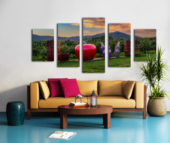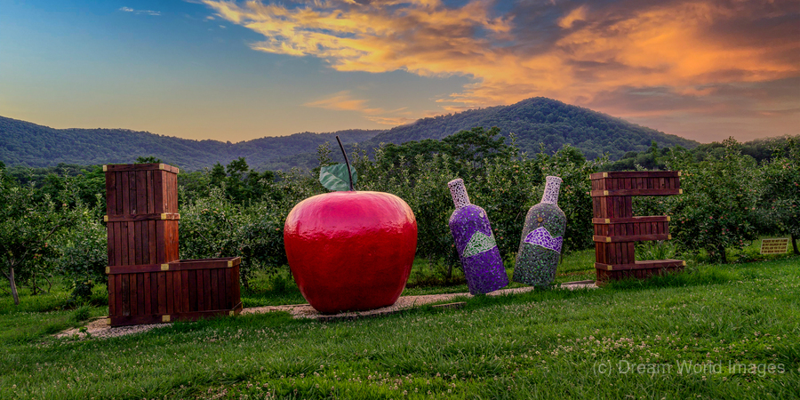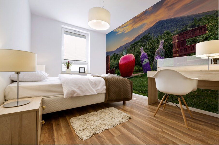 Immerse yourself in the majestic beauty of a Mountain Garden Mosaic, where vibrant colors and intricate designs intertwine to form a harmonious masterpiece that celebrates the beauty of nature and art. This outdoor sculpture features a stunning display of a striking red apple and three oversized wine bottles adorned with mosaic details, towering against a backdrop of towering mountain peaks and a mesmerizing sunset sky. As you wander through this enchanting garden, you will be surrounded by lush greenery and a winding pathway that beckons you to explore and discover the world's wonders. The Mountain Garden Mosaic is a true testament to the creativity of the human spirit and a celebration of the magic that can be found in both nature and art. Experience the magic of this captivating artwork and let it inspire you to appreciate the beauty of the natural world and the boundless creativity surrounding us. With its vibrant colors and intricate details, the Mountain Garden Mosaic is sure to leave you in awe and longing for more. Be sure to visit this stunning masterpiece and let yourself be transported to a world where art and nature converge in perfect harmony.