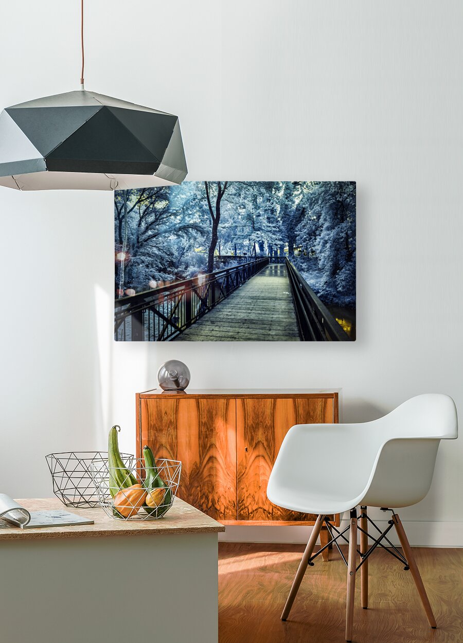 Embarking on an immersive journey through the renowned Jack Daniel's Factory in Lynchburg, Tennessee, my wife and I were enthralled by this iconic distillery's rich history and timeless traditions. As we explored the hallowed halls of the facility, we were captivated by the sights and sounds that encapsulated the essence of Jack Daniel's legacy. Among the remarkable sights we encountered was a large vat adorned with the distinctive Jack Daniel logo—a symbol of craftsmanship and quality that has become synonymous with the brand. This iconic image, captured in a mystical, moody black-and-white infrared, evoked a sense of intrigue and mystique, inviting us to delve deeper into the storied heritage of the distillery. As our journey continued beyond the distillery, we found ourselves drawn to a small footbridge leading into the town of Lynchburg. Bathed in a serene blue hue of infrared, the bridge exuded a tranquil charm that beckoned us to cross into the heart of the town. Each step connected us to the rich history and vibrant culture that define Lynchburg. In this place, time seems to stand still amidst the beauty of the Tennessee landscape. Together, these experiences formed a tapestry of memories that celebrated the allure of Lynchburg and the enduring legacy of Jack Daniel's. From the storied halls of the distillery to the quaint footbridges that lead into town, our journey through Lynchburg was a testament to the timeless charm and captivating beauty of this iconic Tennessee destination.