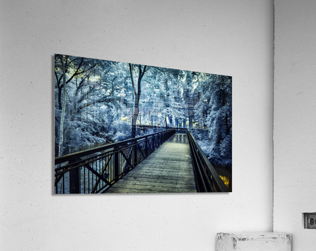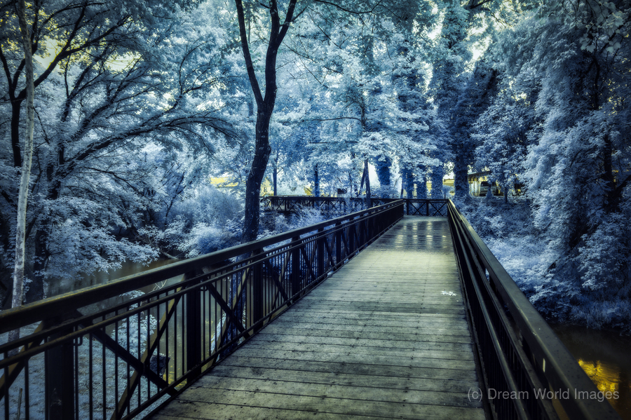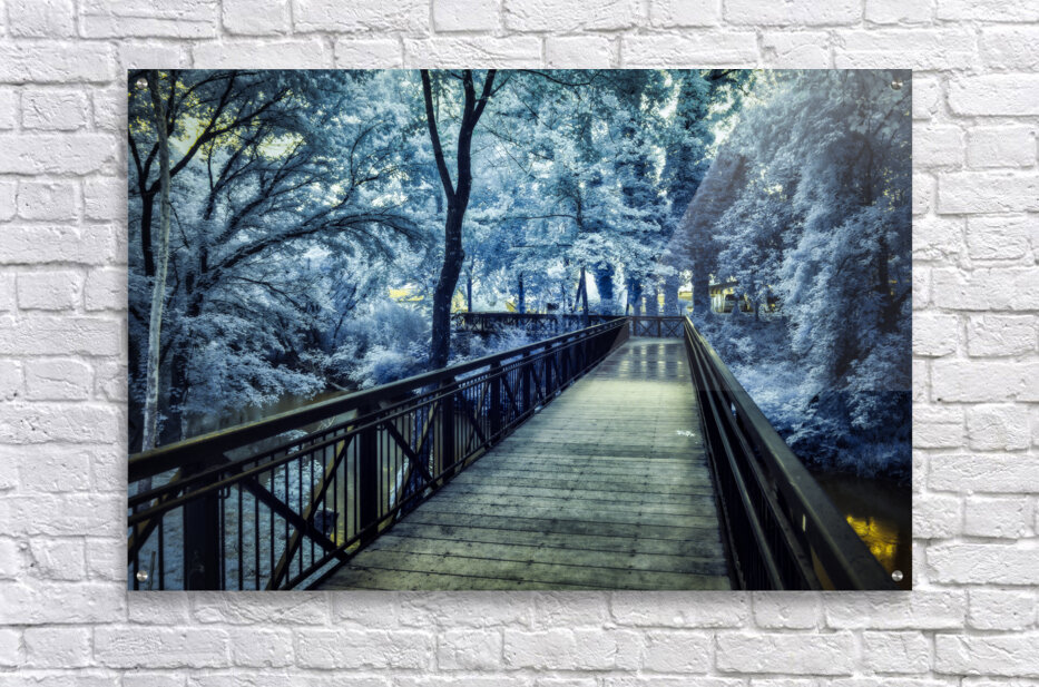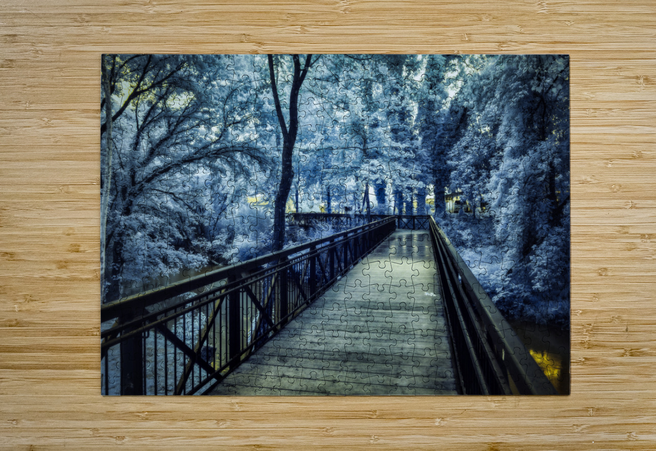 Embarking on an immersive journey through the renowned Jack Daniel's Factory in Lynchburg, Tennessee, my wife and I were enthralled by this iconic distillery's rich history and timeless traditions. As we explored the hallowed halls of the facility, we were captivated by the sights and sounds that encapsulated the essence of Jack Daniel's legacy. Among the remarkable sights we encountered was a large vat adorned with the distinctive Jack Daniel logo—a symbol of craftsmanship and quality that has become synonymous with the brand. This iconic image, captured in a mystical, moody black-and-white infrared, evoked a sense of intrigue and mystique, inviting us to delve deeper into the storied heritage of the distillery. As our journey continued beyond the distillery, we found ourselves drawn to a small footbridge leading into the town of Lynchburg. Bathed in a serene blue hue of infrared, the bridge exuded a tranquil charm that beckoned us to cross into the heart of the town. Each step connected us to the rich history and vibrant culture that define Lynchburg. In this place, time seems to stand still amidst the beauty of the Tennessee landscape. Together, these experiences formed a tapestry of memories that celebrated the allure of Lynchburg and the enduring legacy of Jack Daniel's. From the storied halls of the distillery to the quaint footbridges that lead into town, our journey through Lynchburg was a testament to the timeless charm and captivating beauty of this iconic Tennessee destination.
