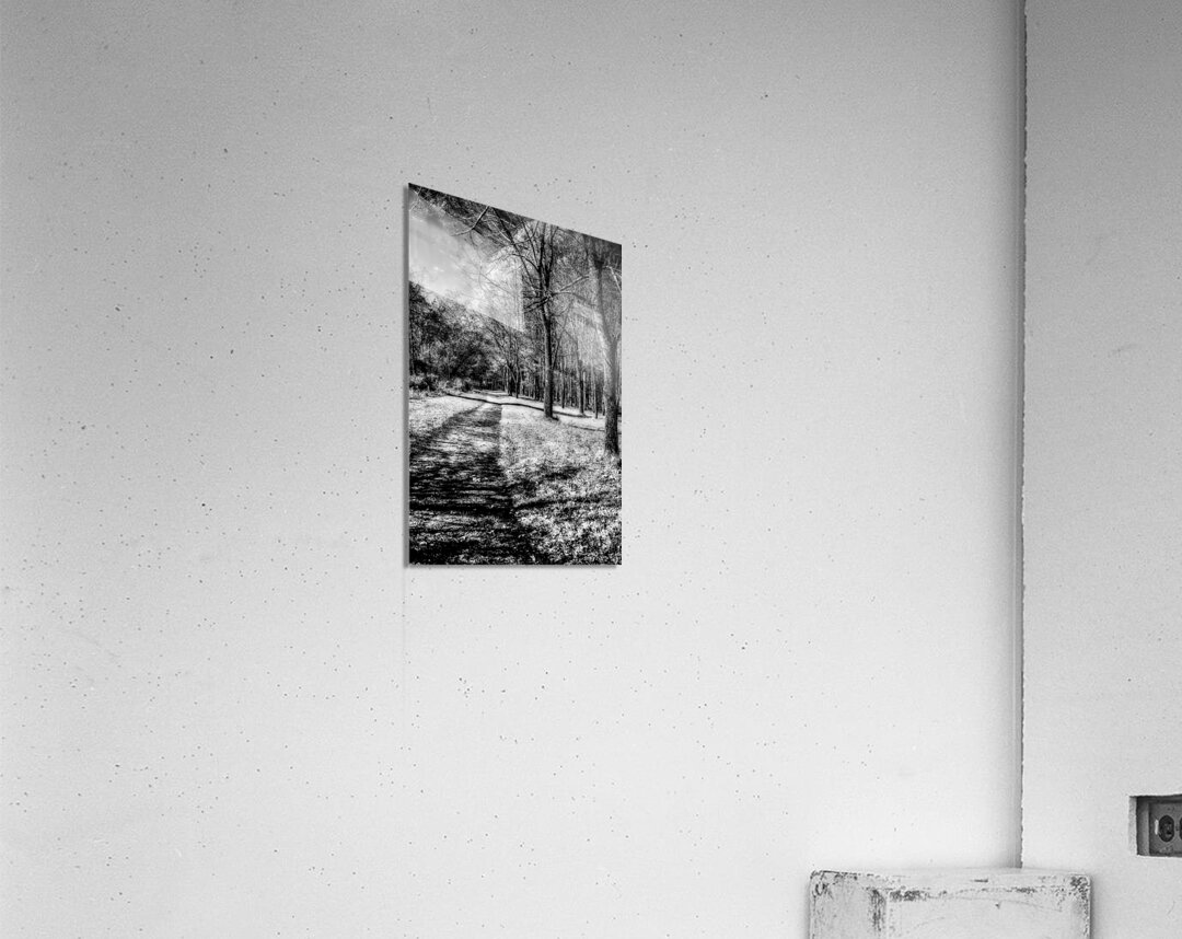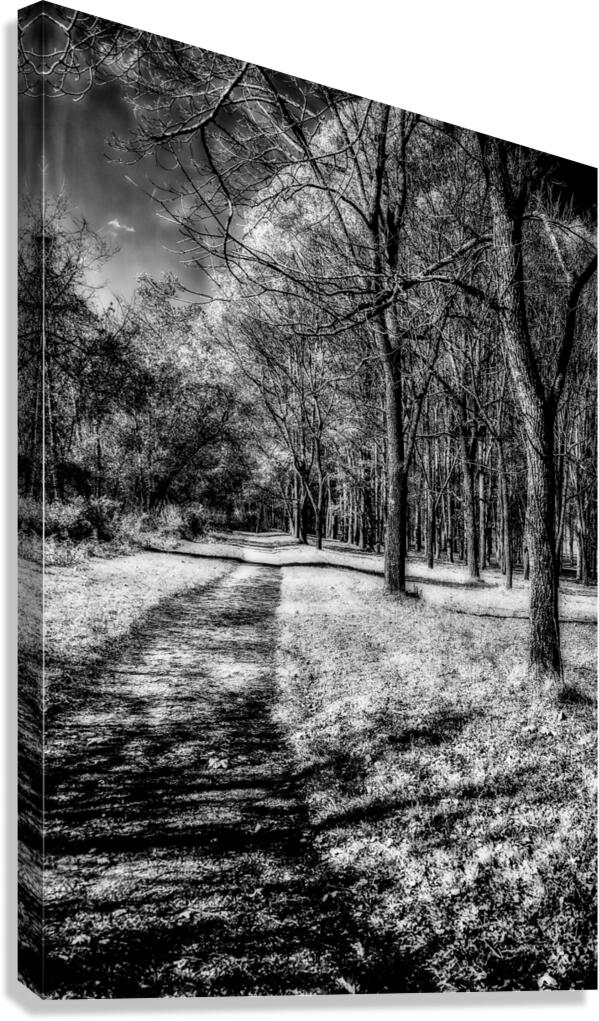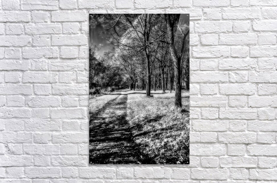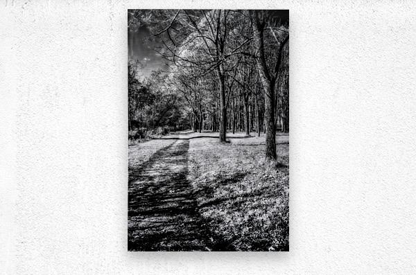 Embark on a visual journey through the outskirts of Knoxville, Tennessee, where a captivating black and white infrared photograph unveils a timeless scene. A rustic dirt path winds along the edge of a dense forest, each step revealing a chiaroscuro dance between stark light and shadows. The monochrome treatment intensifies the contrasts, transforming the ordinary into the extraordinary. The path, under the influence of infrared light, takes on an ethereal quality, inviting viewers to immerse themselves in the quiet beauty of the Tennessee landscape. Stark shadows stretch across the forest floor, creating intricate patterns that add depth to the composition. The play of light enhances the texture of the trees and foliage, turning the scene into a visual poem that resonates with the essence of the natural world. This black and white infrared image is not merely a photograph; it's a portal to a realm where simplicity meets sophistication, and where a dirt path becomes a conduit for introspection. It captures the subtle poetry woven into the landscape just outside Knoxville, where light and shadow coalesce in a dance that transcends time.