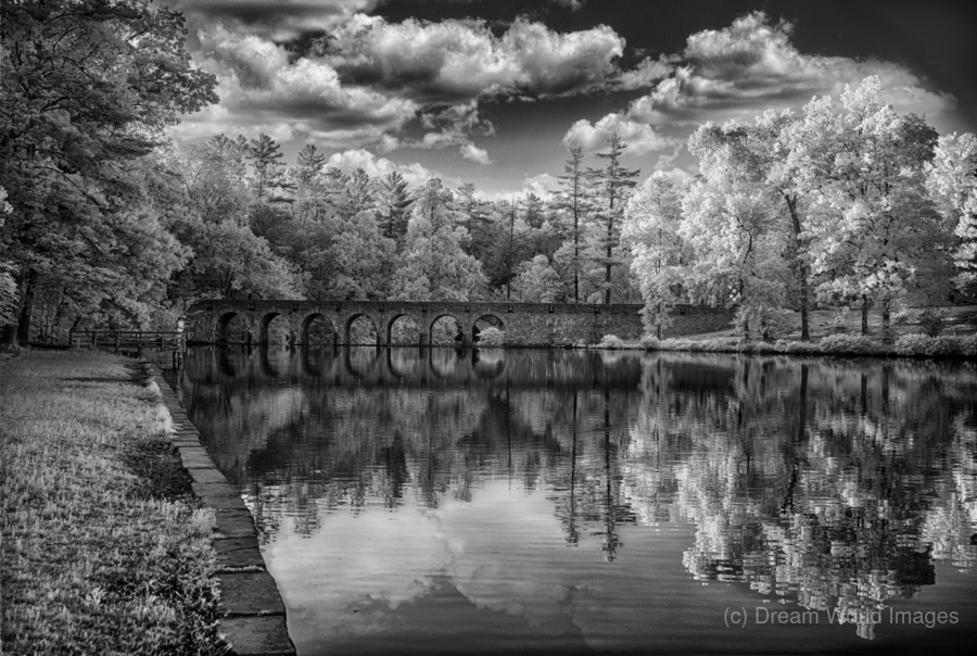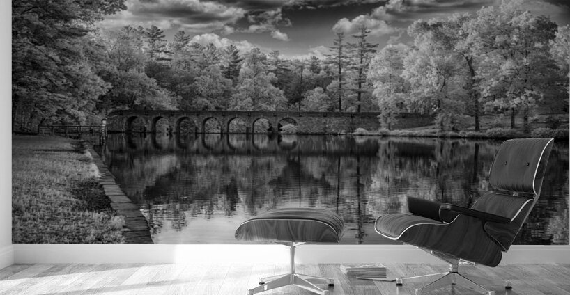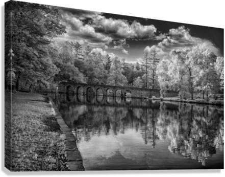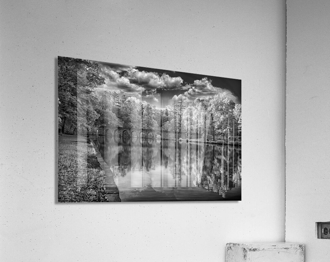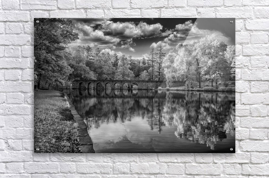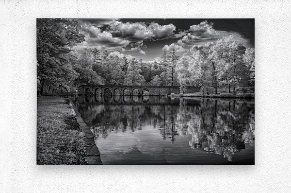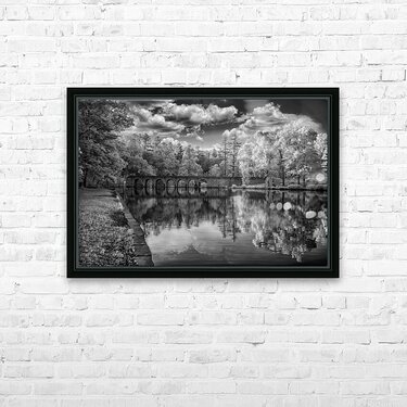 Step into a world of enchantment and serenity with "Arches of Tranquility," a mesmerizing artwork that captures the essence of a peaceful and serene landscape. This stunning image features an ancient stone bridge with multiple arches that gracefully spans over a tranquil body of water. The reflection of the bridge and lush trees creates a harmonious symphony of nature's beauty, while the dramatic clouds in the sky add a touch of mystery and intrigue to the scene. Rendered in timeless black and white, this captivating infrared photograph immerses you in its ethereal and otherworldly charm. Let yourself be transported to a place where time stands still, and tranquility reigns supreme.