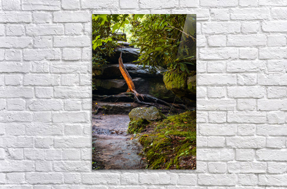 Step into a world of enchantment and wonder with this mesmerizing piece of art inspired by the natural beauty of Natural Bridge State Park in Kentucky. A mossy path reminiscent of the trails in the park winds its way through a hidden forest, leading to a charming wooden bridge spanning a gentle stream. Just like those found in Natural Bridge State Park, the rocks and boulders are covered in lush, emerald moss that beckons hikers to explore further. As the sunlight filters through the leaves, casting a warm, golden glow on the scene, hikers are transported to a place of pure serenity. Delicate ferns add a touch of whimsy, much like the native flora found along the park's trails, creating a sense of magic and tranquility that is truly captivating. Lose yourself in the beauty of this mystical landscape, where nature's beauty reigns supreme, and the enchantment of Natural Bridge State Park comes to life.