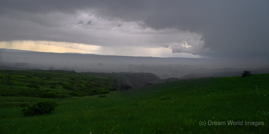 A valley in the Little Big Horn Battlefield during a summer rain.