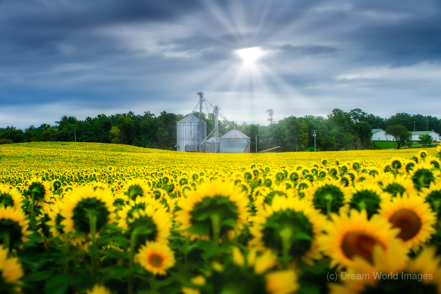 As I ventured into the vast expanse of sunflower fields, the sight that greeted me was nothing short of awe-inspiring. The titled "All Hail" perfectly captured the essence of the moment: a golden tapestry of sunflowers standing tall, their faces turned towards the sun as it peeked through the clouds. With each step, I marveled at the sea of vibrant yellow petals, swaying gently in the warm breeze. The sunflowers, like a congregation paying homage, seemed to bow before the radiant sun, soaking in its life-giving rays. This breathtaking scene unfolded before me, a living masterpiece painted by nature itself. In the distant center of this golden haven, just below the radiant sun, stood a silo, a silent sentinel witnessing the cycle of life. This unassuming structure held the promise of the future – the storage for the precious seeds that would eventually be harvested from these sunflowers, a symbol of sustenance and growth. As I stood amidst this natural cathedral, the air filled with the sweet scent of blooming sunflowers, and the distant hum of nature's symphony surrounded me. "All Hail" became more than a title; it became a mantra for the reverence these sunflowers paid to the sun, their life source, and a testament to the cycle of growth and harvest that unfolded in this enchanting field. Join me in this visual journey through a sunflower paradise, where nature's brilliance takes center stage. Experience the breathtaking beauty of "All Hail," where sunflowers stand tall, basking in the sunlight, and witness the silent promise held within the looming silo on the horizon.