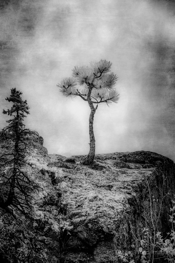 As I ventured into the breathtaking landscape of Sylvan Lake in Custer, South Dakota, I was filled with a sense of wonder and excitement. Surrounded by towering granite rock formations and shimmering waters, I embarked on a hiking journey through one of my favorite spots in the world. As I wandered along the rugged trails, my eyes were drawn to a peculiar sight—a tiny pine tree emerging from the crevice of a massive granite rock. Despite its small size, the tree stood tall and proud, its roots firmly anchored in the rocky terrain. Captivated by the magical scene before me, I knew I had to capture this moment in all its glory. With my camera in hand, I carefully composed the shot, allowing the mystical black-and-white tones of the infrared filter to enhance the ethereal beauty of the pine tree against the rugged backdrop of the granite rock. As I snapped the photograph, I couldn't help but marvel at the resilience and tenacity of nature. Here, amidst the harsh and unforgiving landscape, a tiny pine tree had found a way to thrive, symbolizing hope and perseverance in the face of adversity. As I continued my hike around Sylvan Lake, I remembered that magical encounter, a reminder of the awe-inspiring wonders that await those who dare to explore the great outdoors.