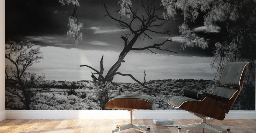 Through nature's delicate curtain, a weathered tree emerges from the rolling landscape. The infrared technique reveals a hidden world where lumino...[+]
