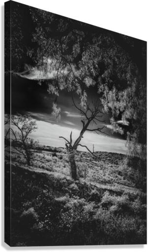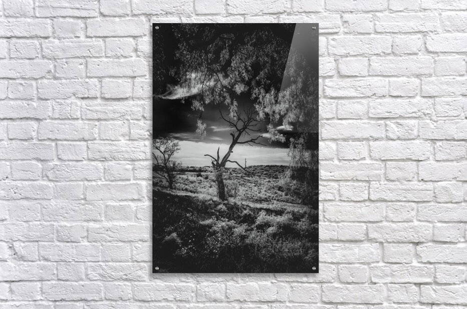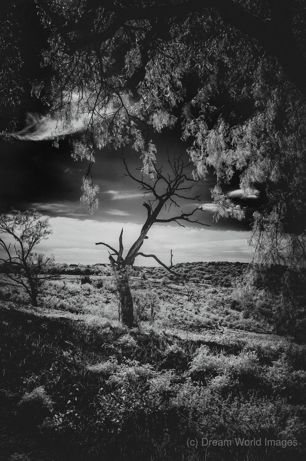 Through nature's delicate curtain, a weathered tree emerges from the rolling landscape. The infrared technique reveals a hidden world where lumino...[+]
