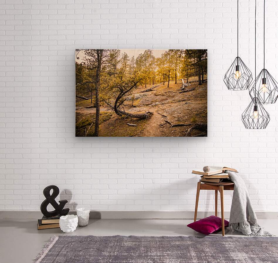 At Legion Lake in Custer State Park, where ponderosa pines paint the hillsides, a gracefully curved tree creates nature's perfect frame. The late afternoon sun bathes the scene in warm amber light, transforming this Black Hills vista into a meditation on nature's artistic hand. Part of the "Serenade of Light" collection, this image captures the delicate balance between strength and grace, where even a bent tree becomes a masterpiece of natural sculpture.