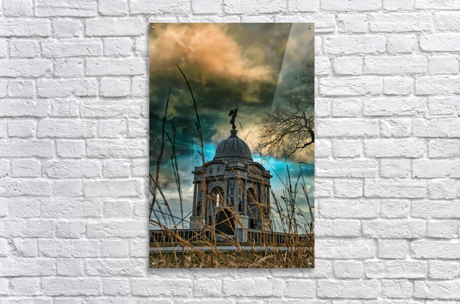 Get this artwork "Storms of Remembrance: An Ominous Storm over the Pennsylvania Monument in Gettysburg" in a framed print.