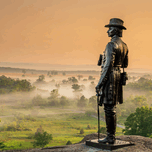 Get this artwork "Dawns Embrace: A Vibrant Sunrise at General Warren Monument in Gettysburg" in a framed print.
