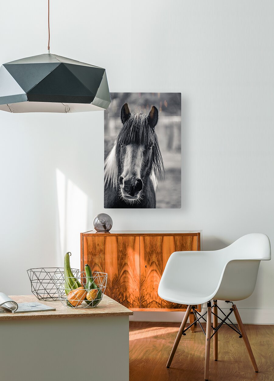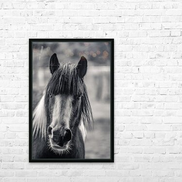Get this artwork "Curious Gaze: A Captivating Encounter with a Silent Horse " in a framed print.