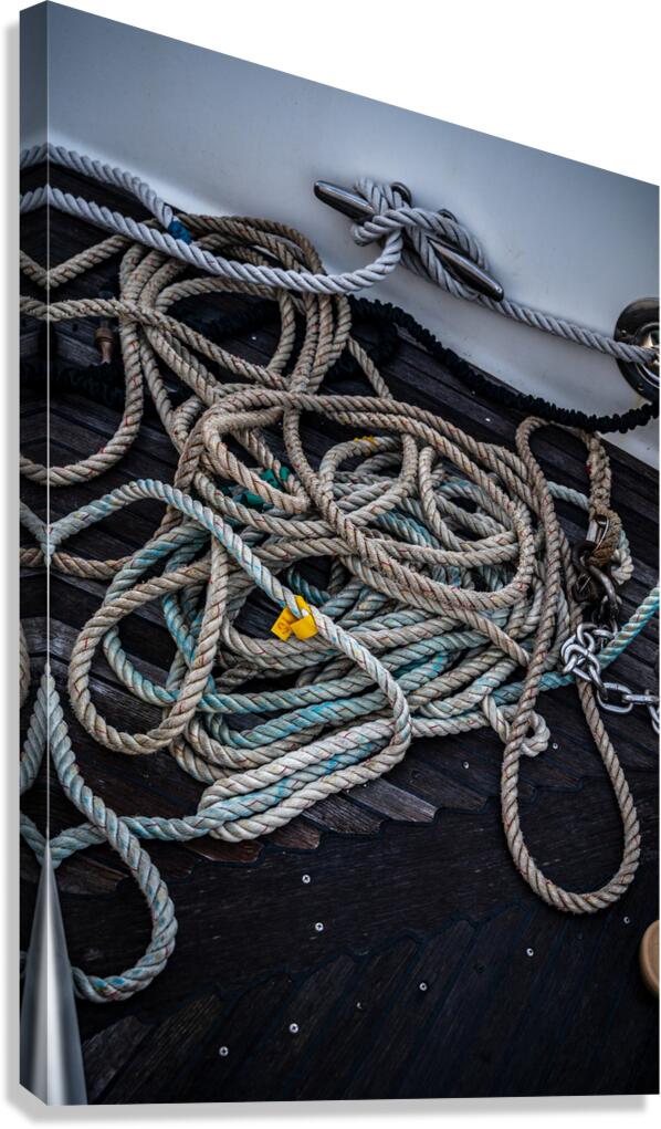 Get this artwork "Nautical Knots: Untangling the Stories on a Boat Deck" in a framed print.