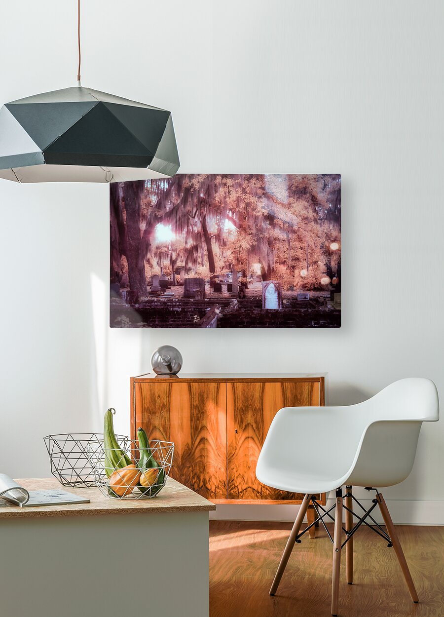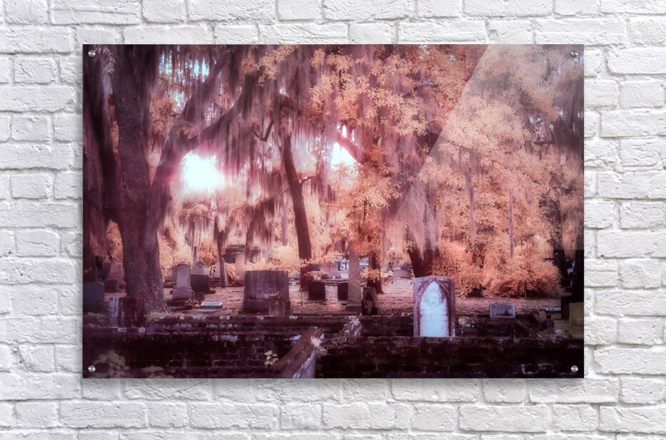 In the early days of spring my wife and I found ourselves drawn to the historical charm of Saint Marys Georgia. Our journey led us to the enchanting Oak Grove Cemetery a place filled with stories etched into the weathered walls and headstones beneath the ancient trees. As the day gently transitioned into the evening we witnessed a breathtaking sunset scene that unfolded with a moody infrared feel. The Spanish moss draped gracefully from the trees creating an ethereal atmosphere as the sun glowed through the branches illuminating the headstones and weathered walls scattered throughout the cemetery. This outdoor adventure became a journey through time and natures embrace. The serene landscapes of Oak Grove Cemetery took on a mystical quality capturing the essence of the coastal towns history and beauty. Each ray of sunlight filtered through the moss-covered branches painted a picture of tranquility and reflection. Our family travel to Saint Marys Georgia became a memorable experience with the moody sunset at Oak Grove Cemetery leaving an indelible mark on our hearts. The play of light and shadow the ancient trees and the weathered walls created a timeless scene reminding us of the enduring beauty found in the convergence of history and nature.
