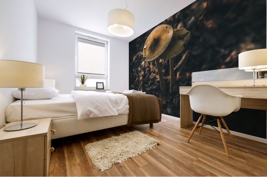 Mystical Fungi: Guardian Shroom by the Forest Path Wood print