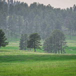 Embarking on a picturesque drive along the wildlife loop at Custer State Park in South Dakota I immersed myself in the tranquil beauty of the rural landscape that unfolded before me. Little did I know that my journey would lead me to capture a photograph that perfectly encapsulated the serene charm of the American wilderness. The image depicted a tranquil rural landscape bathed in the soft glow of early morning or late afternoon light. In the foreground a lush green field stretched out as far as the eye could see its grass textures hinting at a gentle breeze sweeping across the open space. Amidst the verdant expanse a few prominent trees stood tall and proud in the middle ground their thick leafy canopies contrasting against the vast openness of the field. Beyond these trees a denser forest climbed the gentle slopes of rolling hills adding depth and dimension to the scene. As I beheld the quiet beauty of the pastoral setting before me I couldnt help but feel a sense of peace and tranquility wash over me. The soft shadows cast by the gentle light only enhanced the serene atmosphere inviting me to linger and savor the moment. Capturing the essence of the landscape in that fleeting instant I knew that the memory of this serene journey through Custers wildlife loop would stay with me forever a testament to the timeless allure and tranquility of the American West.