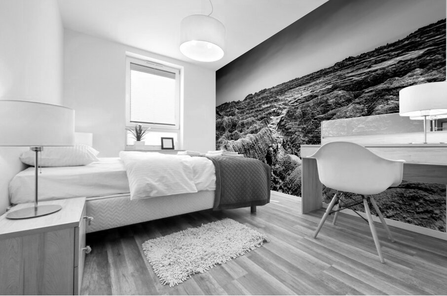 In the heart of the captivating Badlands of South Dakota lies a mystical locale known as the White River. Captured through the lens of infrared photography the invisible light image unfolds revealing a landscape painted in grayish blue hues and adorned with unique rock formations that resemble a meandering white river. As one delves into the scenerys vastness the rock formations ethereal qualities become apparent. The invisible light image captures the essence of the White River a mesmerizing path winding through the rocks. Flowing off the cliff the river widens in the distance inviting exploration along this enchanting and otherworldly pathway. The grayish-blue hues enhance the tranquility of the scene elevating the mystical ambiance of the Badlands. The White River brought to life in the magic of infrared stands as a captivating and unseen feature urging observers to ponder the secrets of natures artistry hidden within the invisible light. This tale of Whispers of Nature is a testament to the outdoor exploration opportunities that the Badlands of South Dakota present. The infrared enchantment with its grayish blue hues and the captivating White River beckons travelers to immerse themselves in the awe-inspiring wonders of this iconic destination where each glance unveils the whispered beauty of natures hidden pathways.