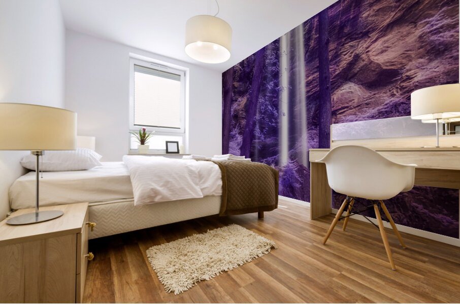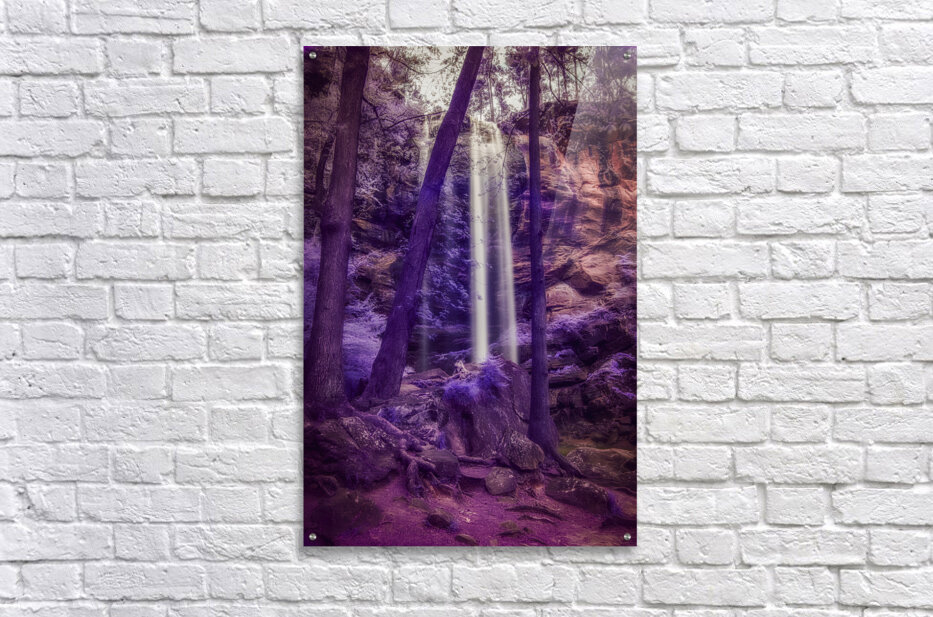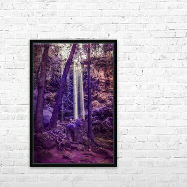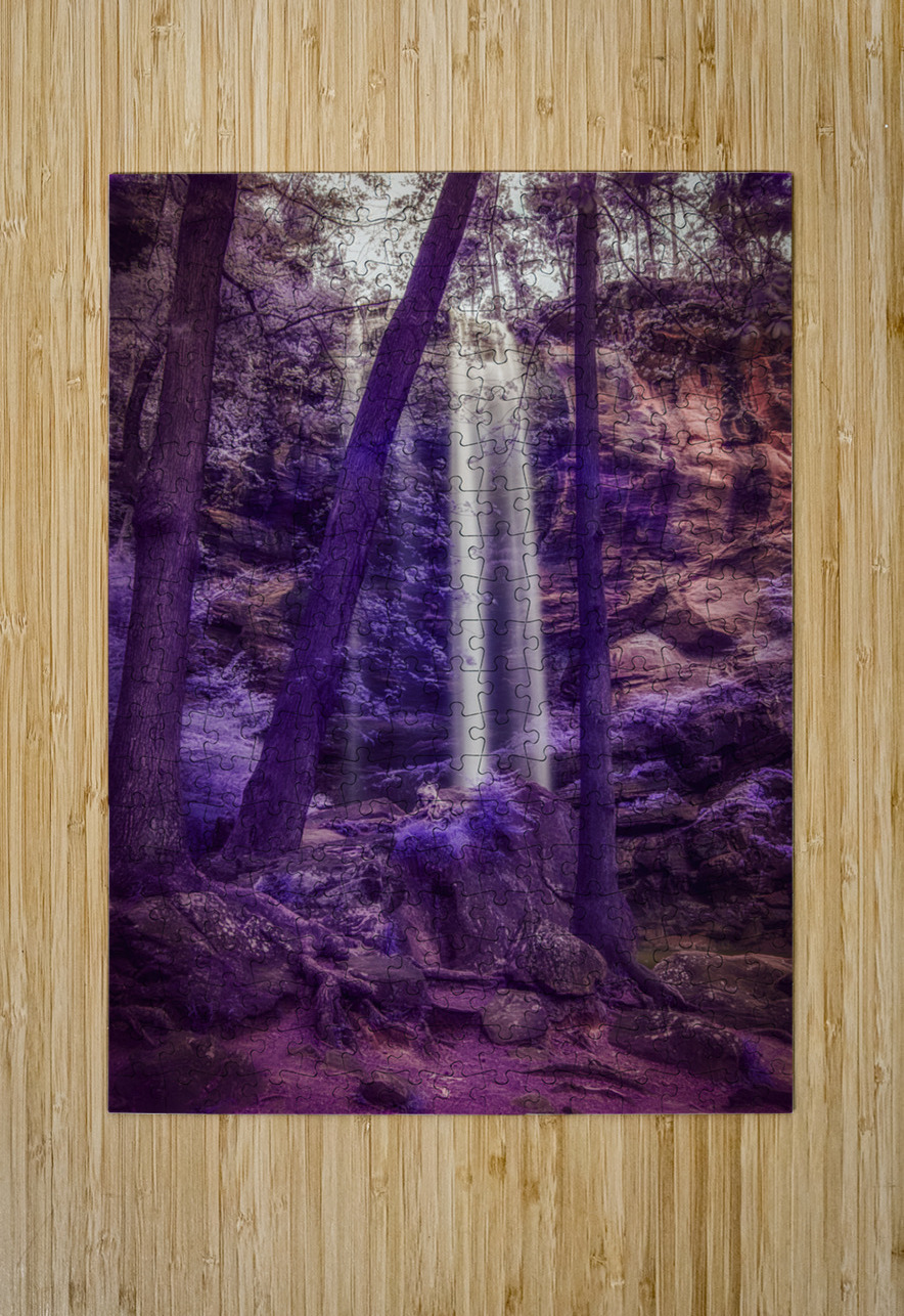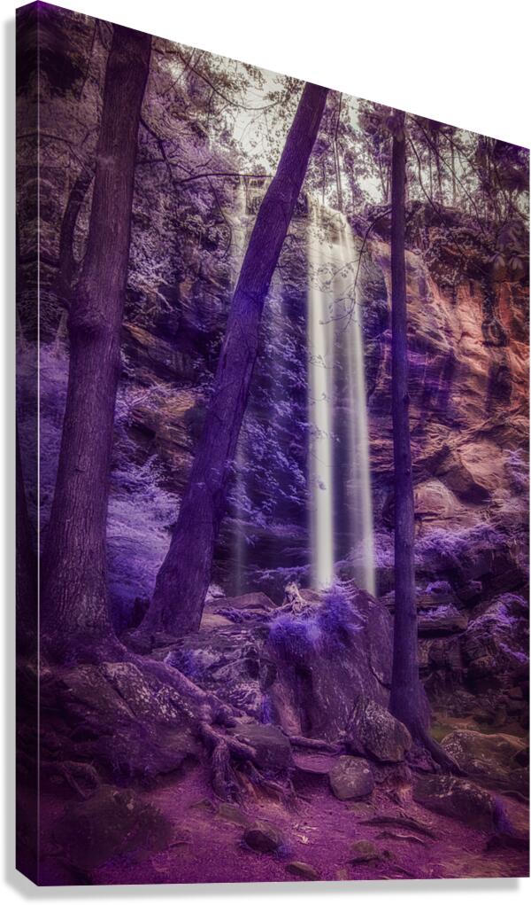 Step into a world of enchantment with Violet Dream a captivating photograph that transports you to a surreal landscape featuring Taccoa Falls in North East Georgia. In this stunning scene a gentle waterfall flows down a rocky cliff surrounded by tall slender trees that stand tall and strong against the ethereal backdrop. The purple and violet color palette creates a sense of mystery and magic while the dappled light filtering through the canopy adds a touch of enchantment to the scene. Lose yourself in the dreamlike atmosphere of this mesmerizing artwork where beauty and tranquility collide in a truly unforgettable way.