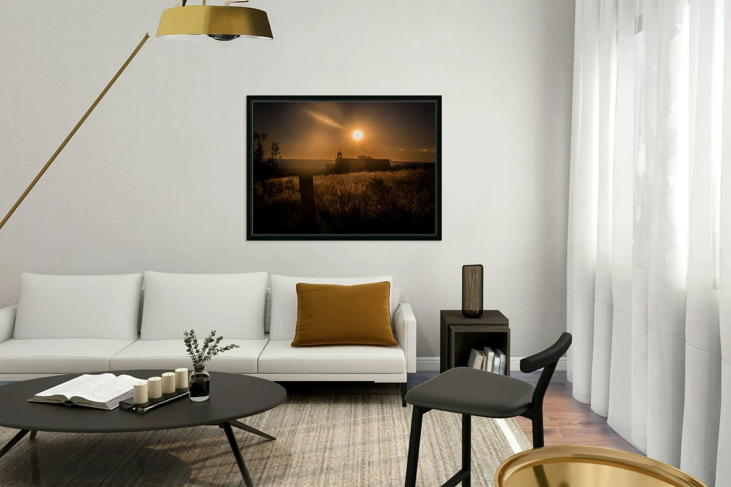 My wife and I were on our way back from the San Cristobal NM post office when we spotted the San Francisco de Asís Catholic Mission Church and the lighting was just incredible. The way the golden sunset bathed the landscape felt like pure magic and we knew we had to capture the moment. The scene became the photograph I call *Bell Tower Silhouette in Sunlit Harmony*. It captures that ethereal transition from day to night where the suns warm glow transforms the world into a realm of quiet beauty. Tall shimmering grasses stretched across the foreground their long shadows whispering with the breeze. And there it was—the church slightly off-center yet powerfully commanding the scene with its silhouette. Its pointed roof and delicate bell tower seemed to hold stories of times gone by enhancing the sense of mystery and reverence in the photograph. The sky was an almost perfect canvas painted with just a few wispy clouds dancing along the horizon giving space for the sunlight to softly fade into the calm of the approaching night. This image wasn’t just about what we saw it was about the feeling of serenity and the harmonious balance between the church’s architecture and the natural world around it. It invites you to pause reflect and marvel at the beauty that unfolds when light meets earth in perfect sunlit harmony.