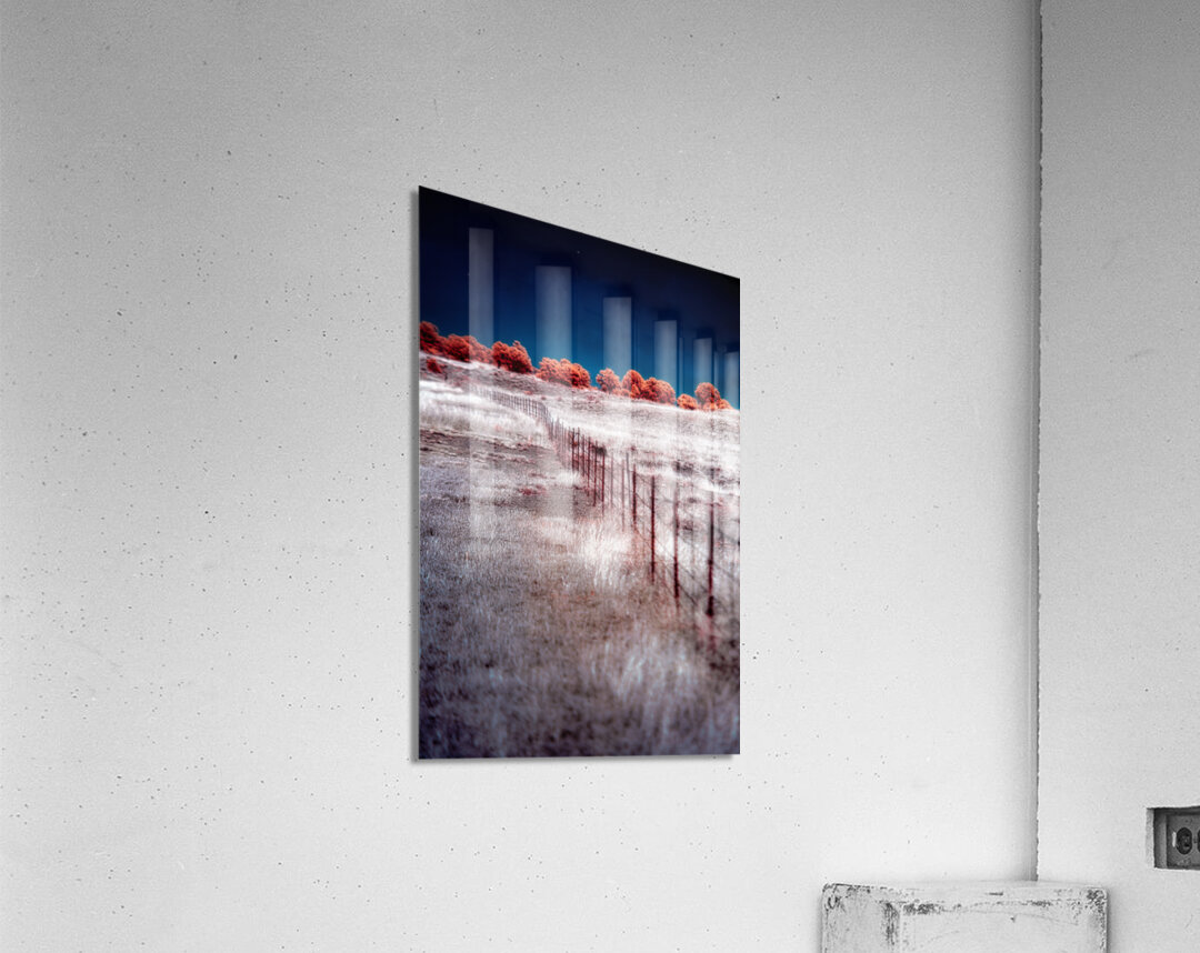 In the enigmatic realms where reality blurs into fantasy Fence Through a Surreal Horizon emerges as an ethereal photograph that distills the essence of otherworldly beauty. This mesmerizing piece unveils a starkly linear fence confidently slicing through an expansive landscape that dances delicately on the edge of the surreal. Grasses foregrounded in ghostly hues of white to light beige evoke a sense of temporal disorientation while the early horizon bursts forth with bushes and trees cloaked in the incandescent allure of fluorescent oranges and pinks. These blazing unnatural colors stand in exquisite contrast against the deep tranquil abyss of the sky a shade of blue so profound it seems to whisper secrets of another dimension. The artistry lies in the depth of field guiding the viewers gaze along the fence as it marches resolutely towards the horizon where it softly dissipates into the enigmatic distance. This deliberate focus creates a dreamscape where the natural becomes mystical and the mundane transforms into the surpassingly sublime. Each element in the composition orchestrates a symphony of contrasts—natural yet surreal soft yet vivid linear yet boundless—drawing the observer into a visual voyage of hypnotic stillness and dynamic wonder. The power of this photograph stems from its ability to convey a moment suspended between the tangible and the fantastical. The fence both a divider and a guide signifies the thin boundary between reality and the ageless dreamworld inviting the viewer to cross over and lose themselves in the mystique of the surreal horizon.