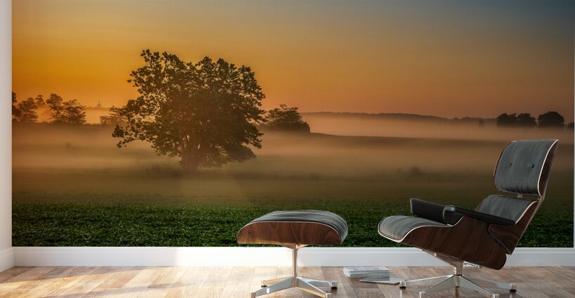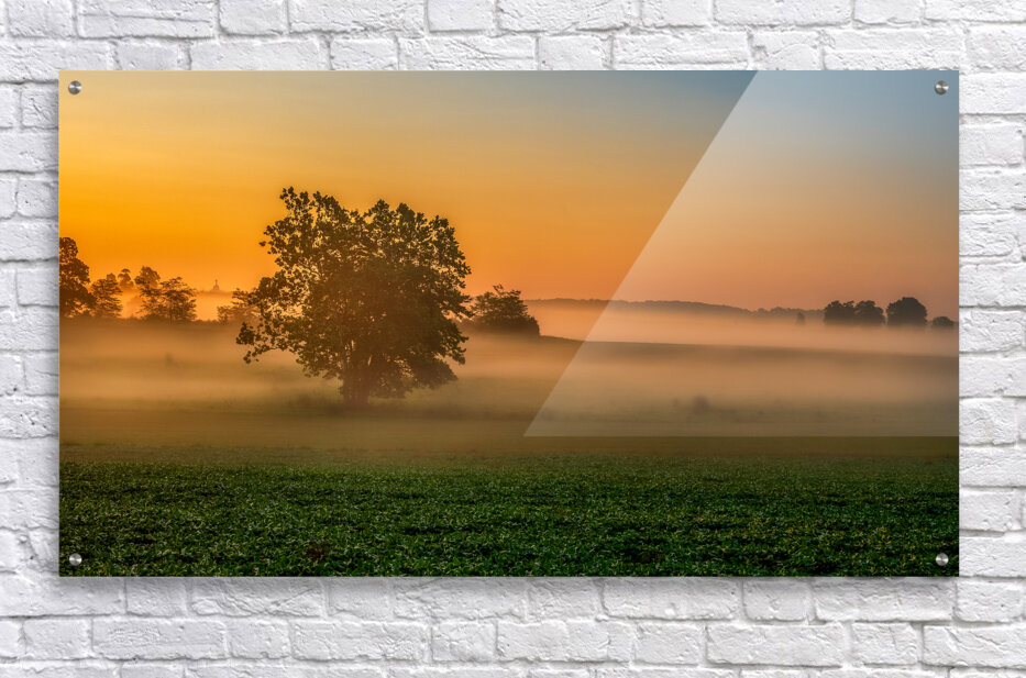 Dawns Embrace: Morning Tranquility at Gettysburg  Impression sur bois