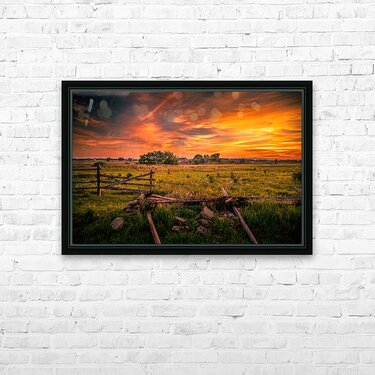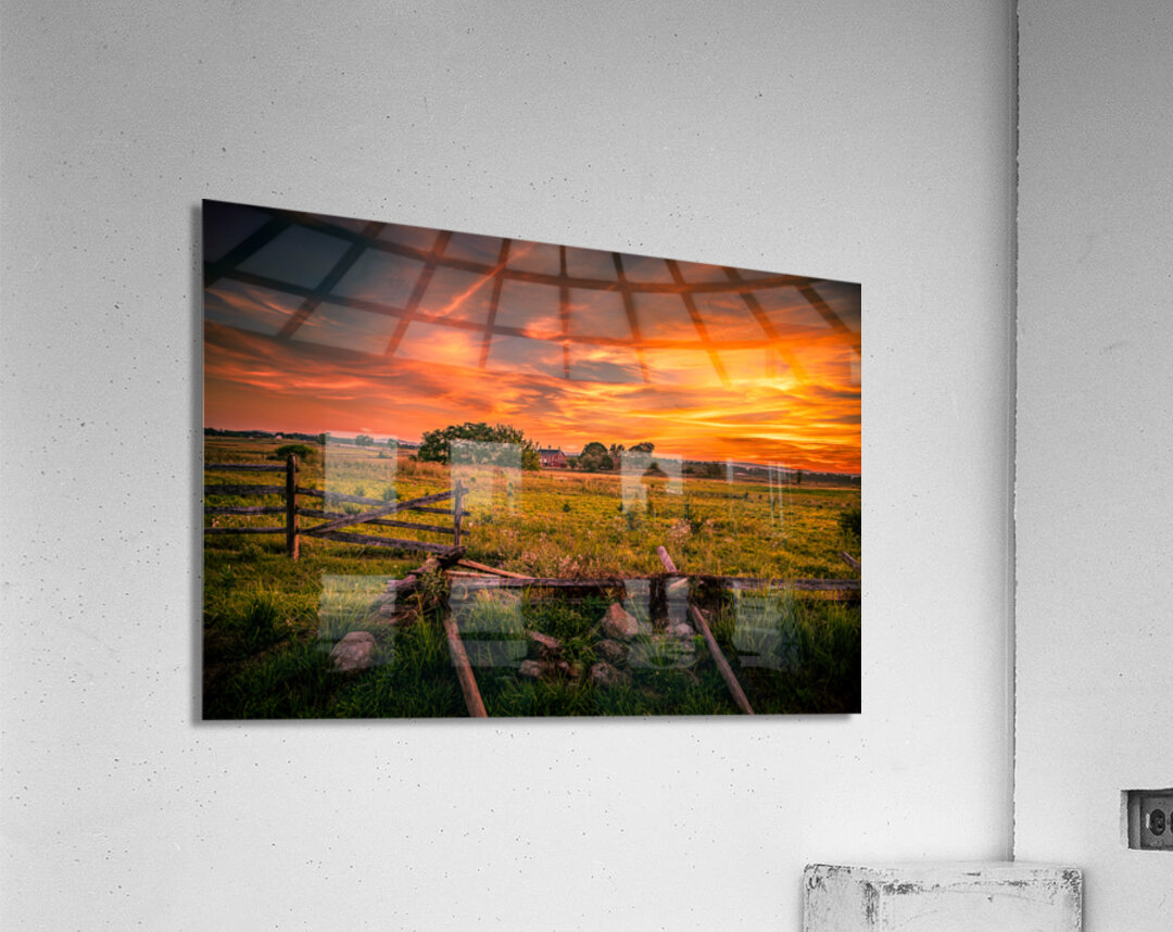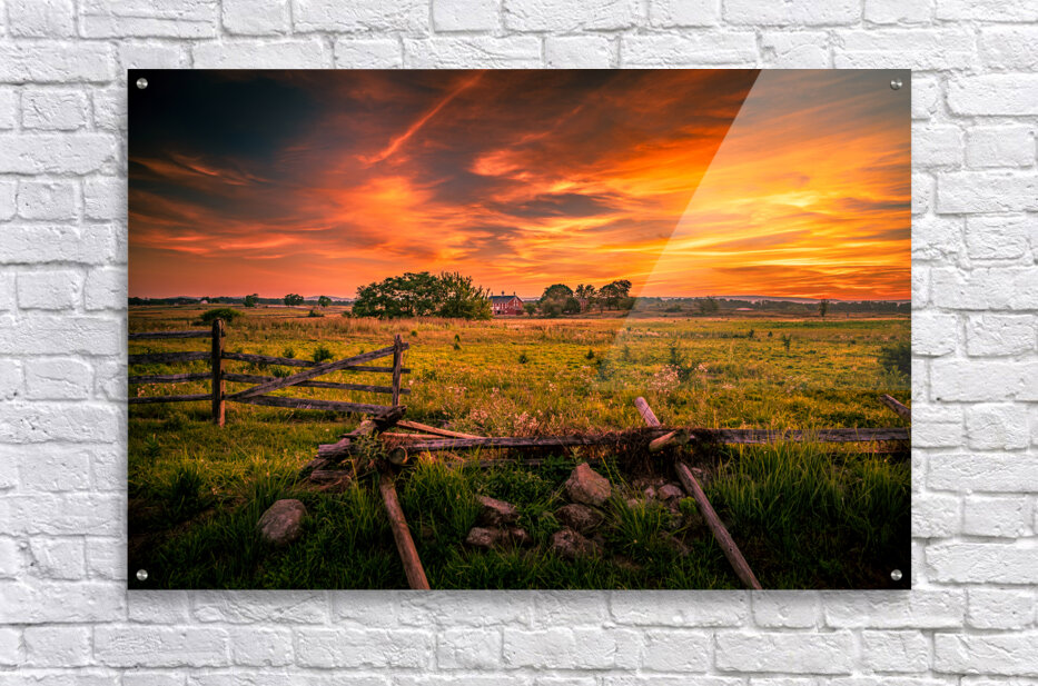 Pour obtenir "Fields of Fire: Sunset on the Codori Barn in Gettysburg" dans une impression encadrée.