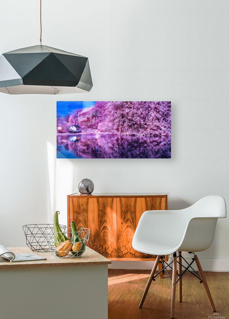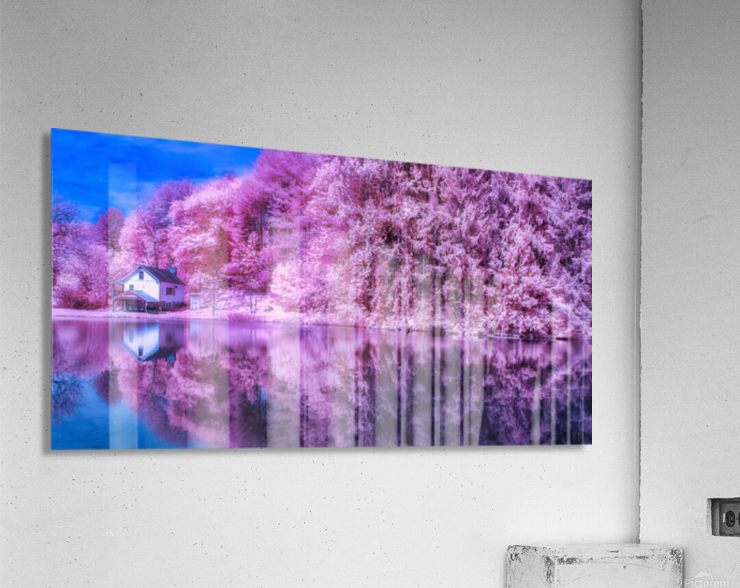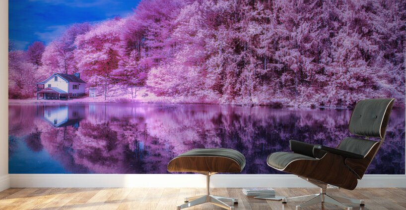 Natures perfect reflection captured through infrared photography where reality melts into dreams. Pink foliage dances with deep blue skies doubled in ...[+]