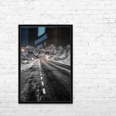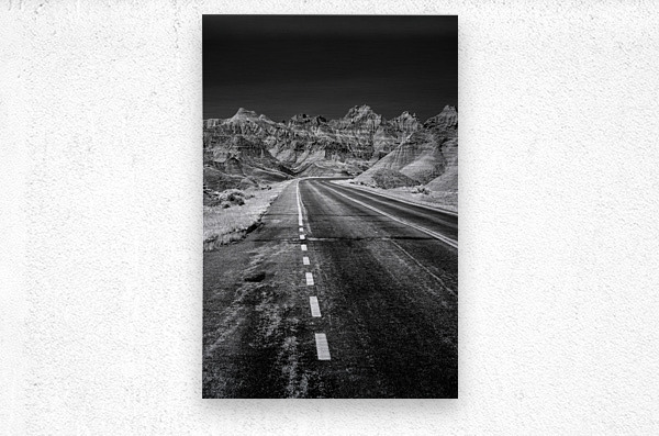 As Mays warmth embraced the Badlands my wife our loyal English pointer Cooper and I embarked on an exploration of South Dakotas mesmerizing landscapes. Every bend in the road revealed a new marvel and Infinite Ascent captures one such moment—an infrared road climbing a gentle slope seemingly ascending into a wall of rocks before gracefully veering right. This black and white image transforms the brilliant blue sky into a stark black thanks to the mystical touch of infrared light. The rocks intricately detailed stand as stoic witnesses to the passage of time and the beauty that nature unveils in this unique corner of the world. Named Infinite Ascent this photograph not only freezes a fleeting moment in the Badlands but also invites viewers to ponder the mysteries that await around the next turn in the road.